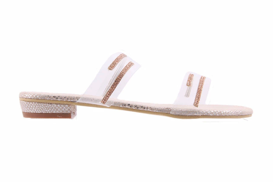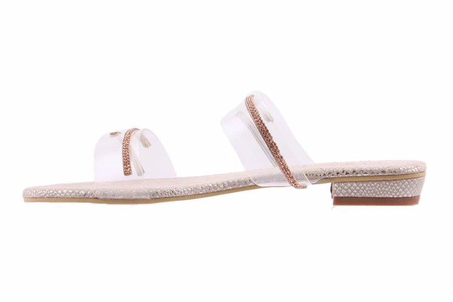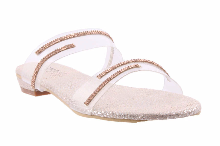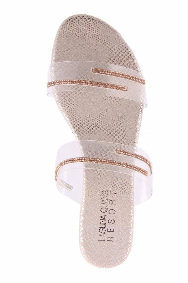 Slide into Goldy by Laguna Quays. These sandles are sure to dazzle anyone with a featured rhinestone and clear straps.
