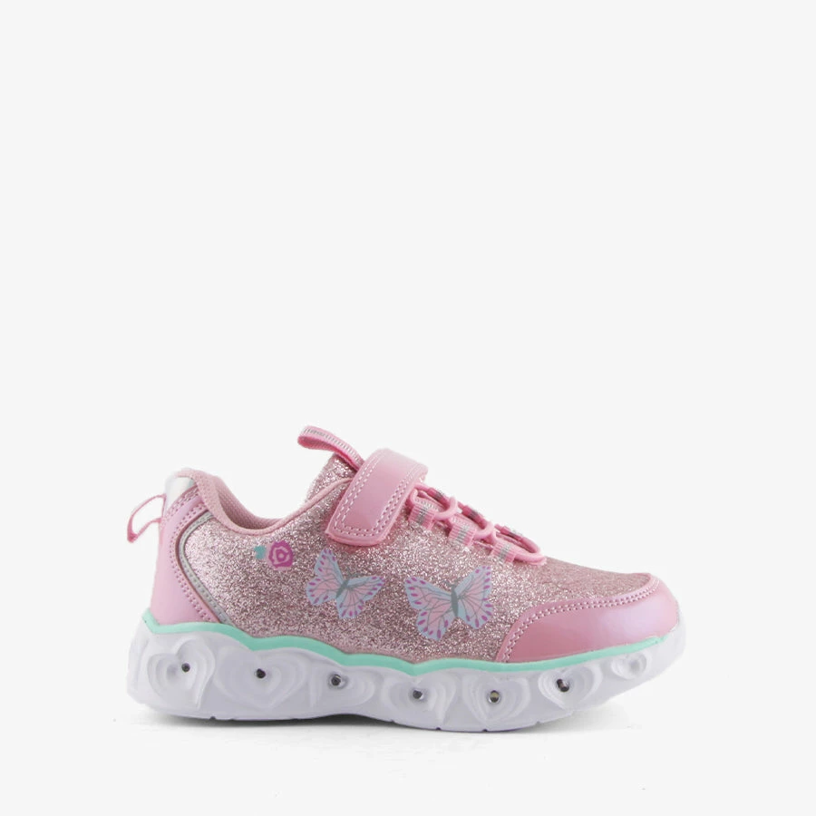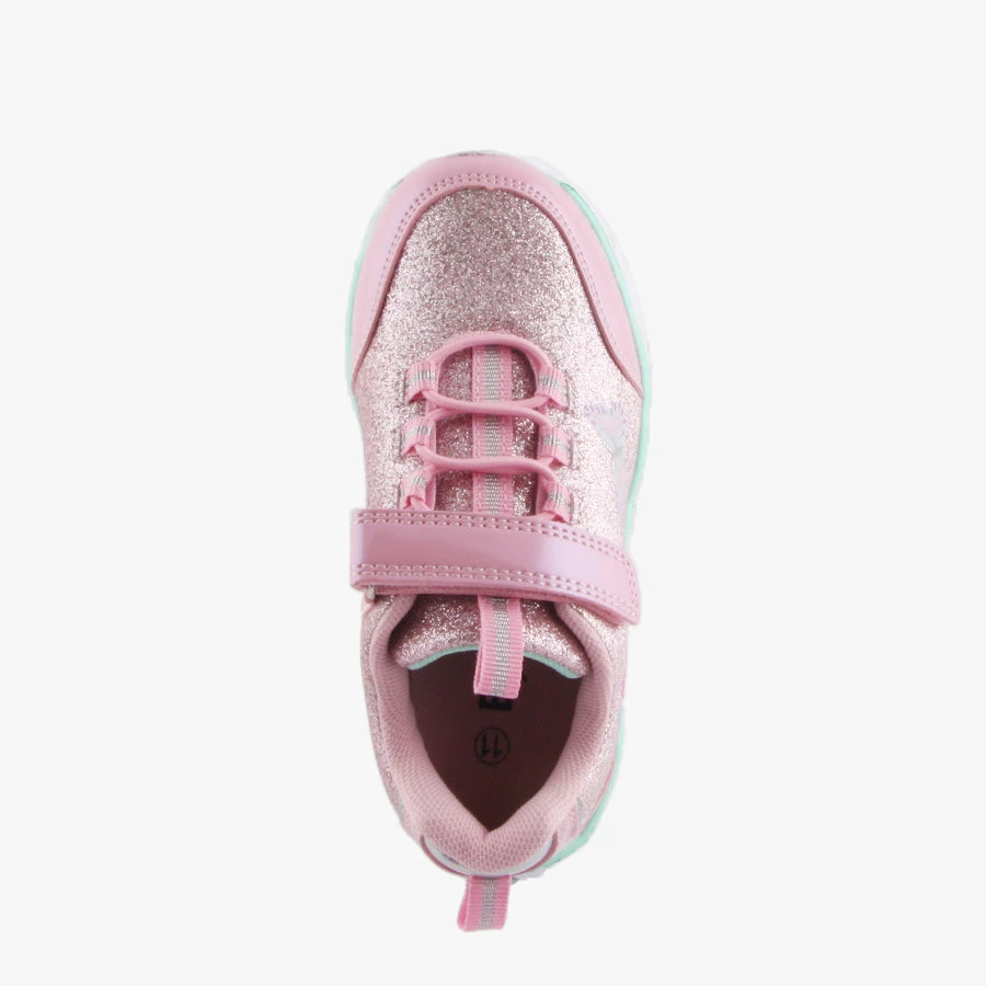 Flutter by Lightning Bolt is a kids sneaker that features a velcro strap closure with bungee laces for easy wear and an ultra lightweight sole with built in flashing lights.