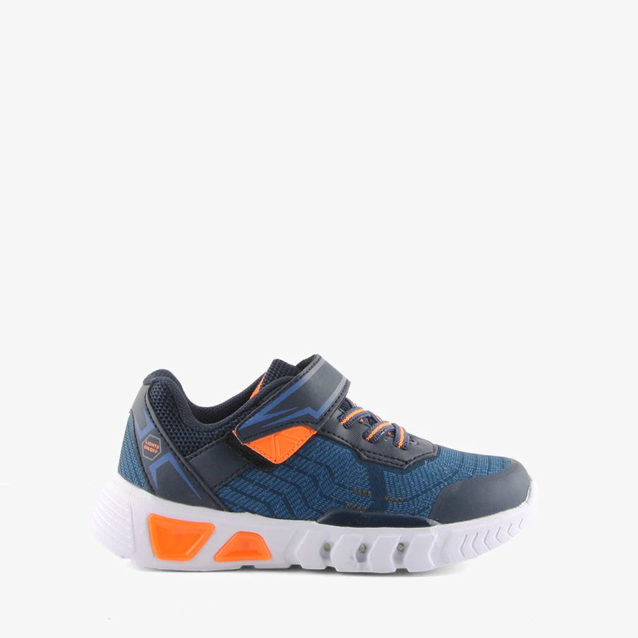 Cannon by Lightning Bolt is a kids sneaker that features a velcro strap closure with bungee laces for easy wear and an ultra lightweight sole with built in flashing lights.