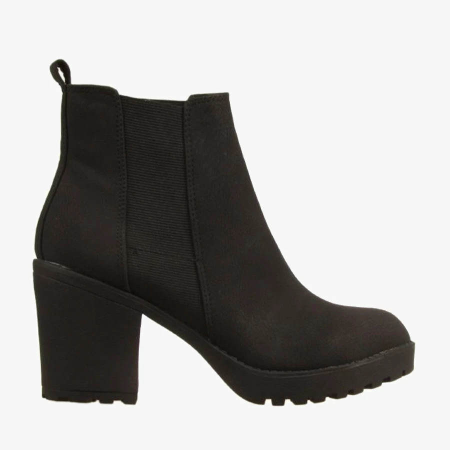 Acting by London Rebel is a women’s ankle boot featuring elastic panels at the sides and a smooth upper with an almond shaped toe on a block heel.