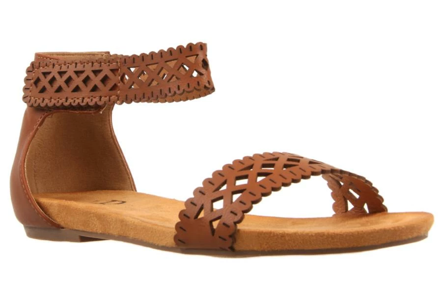 Marcia by London Rebel is a women’s flat sandal featuring a laser cut design across the toes and around the ankle, closing with a velcro strap and finished with a soft microsuede lined insole.