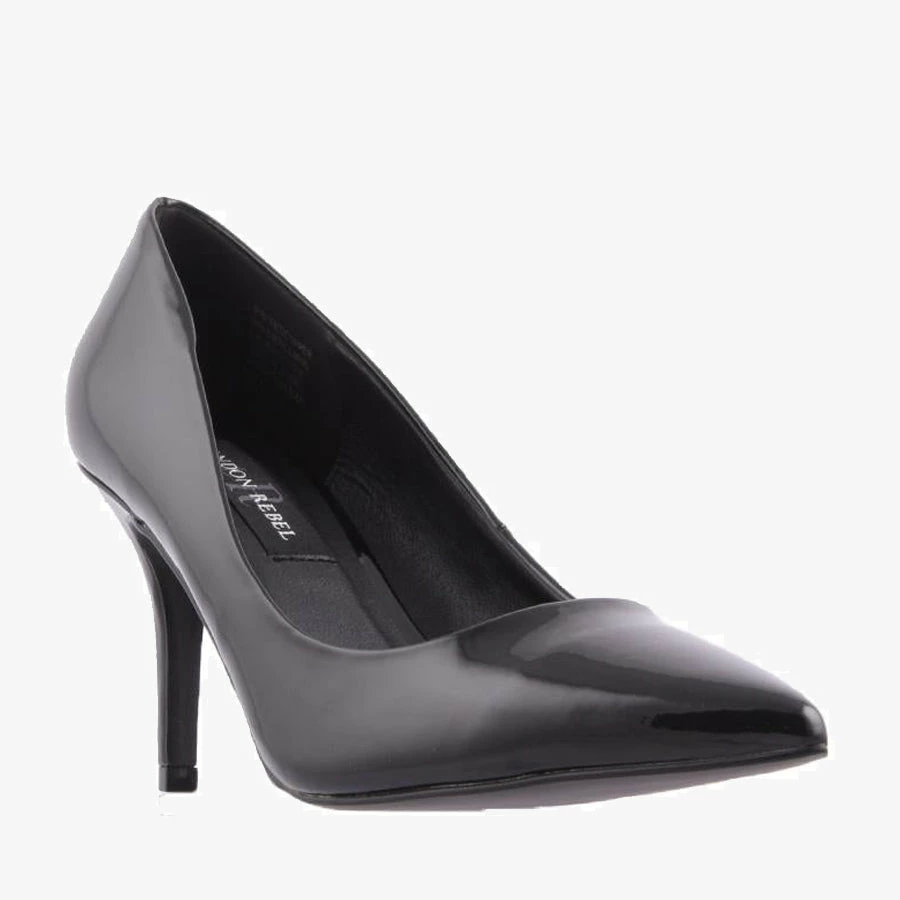Stardom by London Rebel is a wardrobe staple heel featuring a pointed toe, stiletto heel and patent upper.