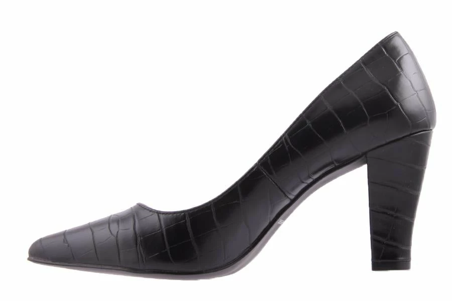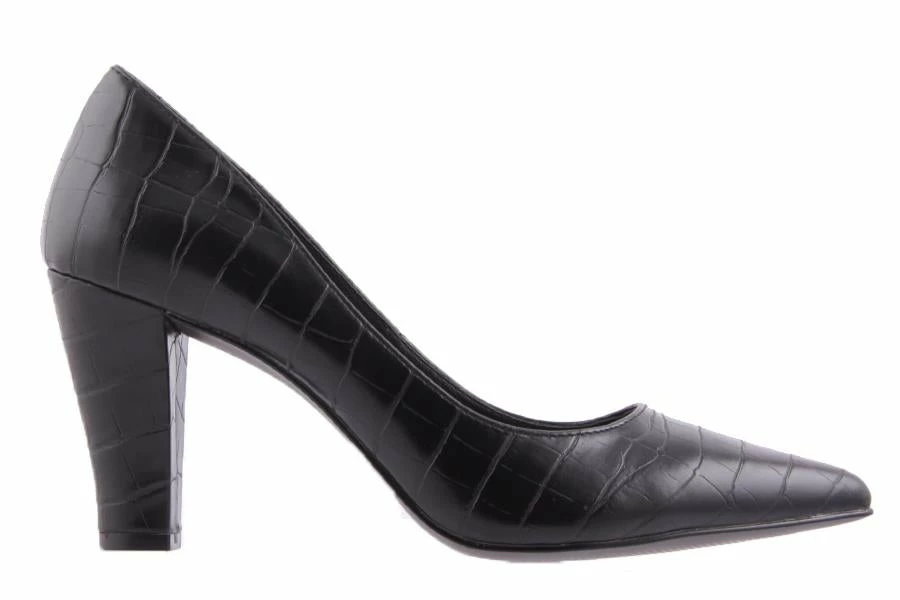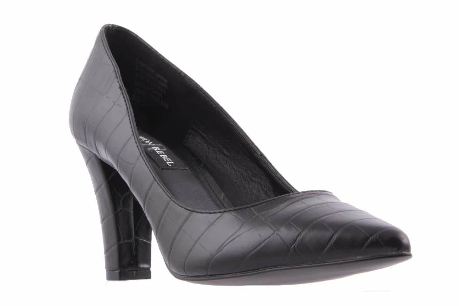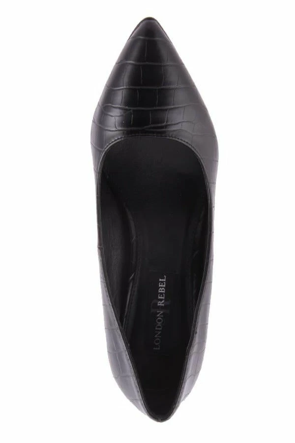 Ninetofive by London Rebel is a women’s pump featuring a black croc textured upper with a pointed toe on a mid heel.