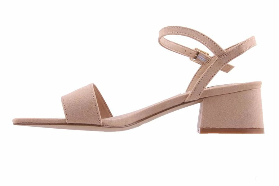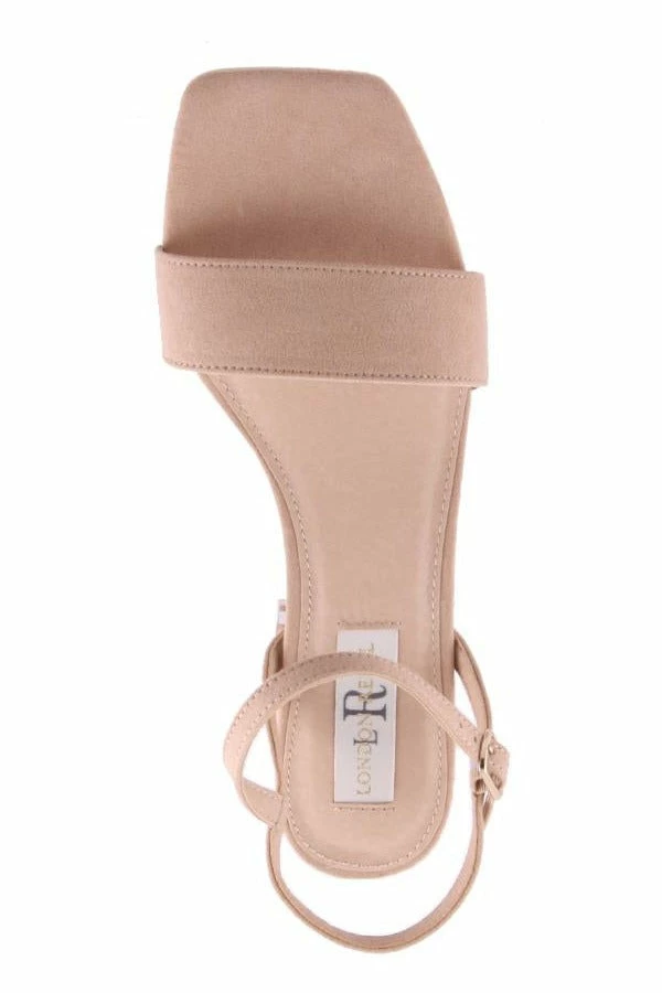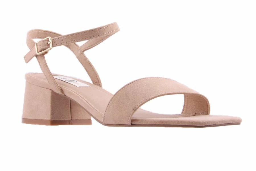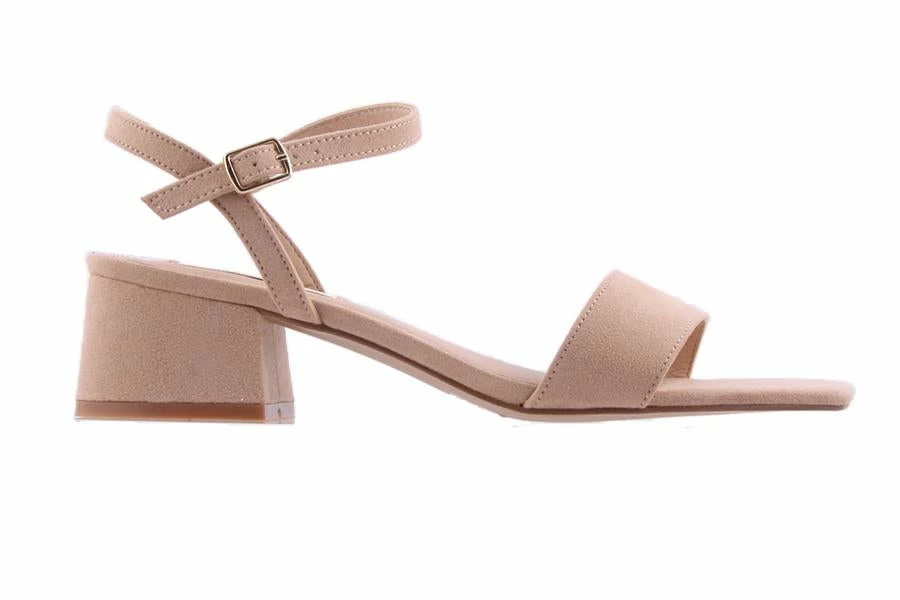 Shuri by London Rebel is a women’s low heeled sandal featuring a microsuede upper with a buckled strap and matching block heel.