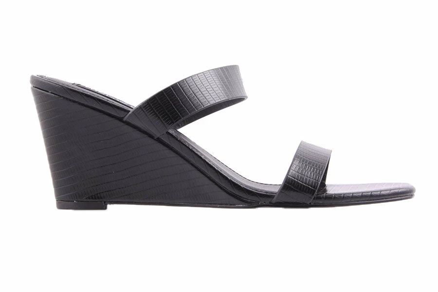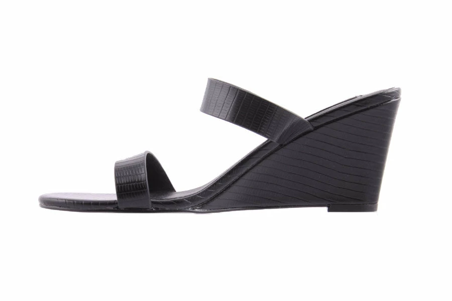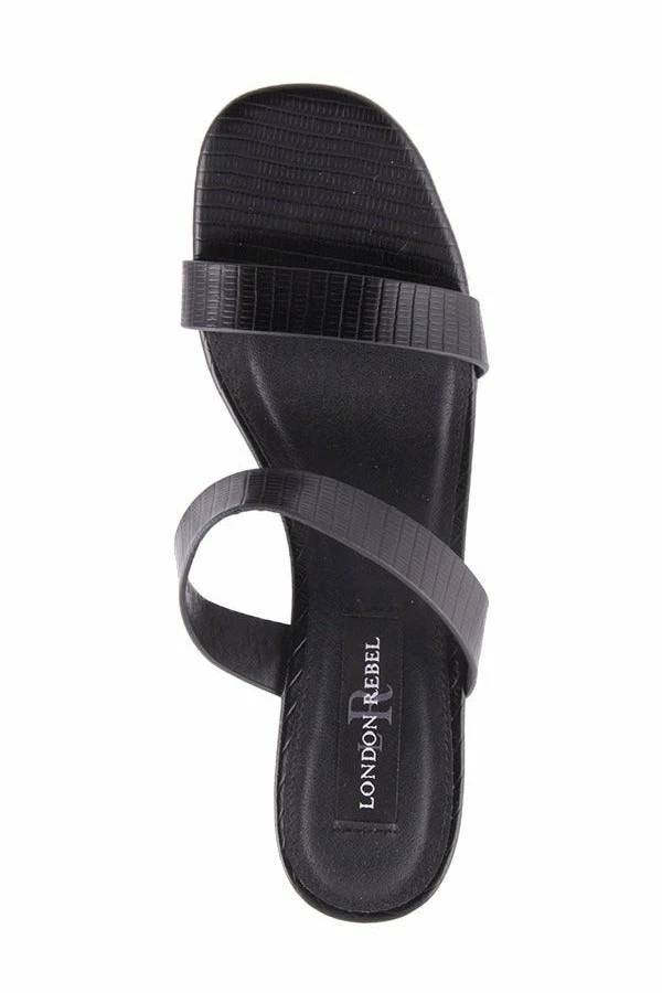 Olive by London Rebel is a simple mid height wedge with a textured upper and two supportive straps.