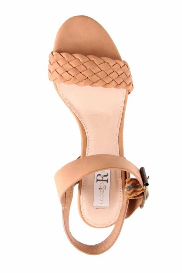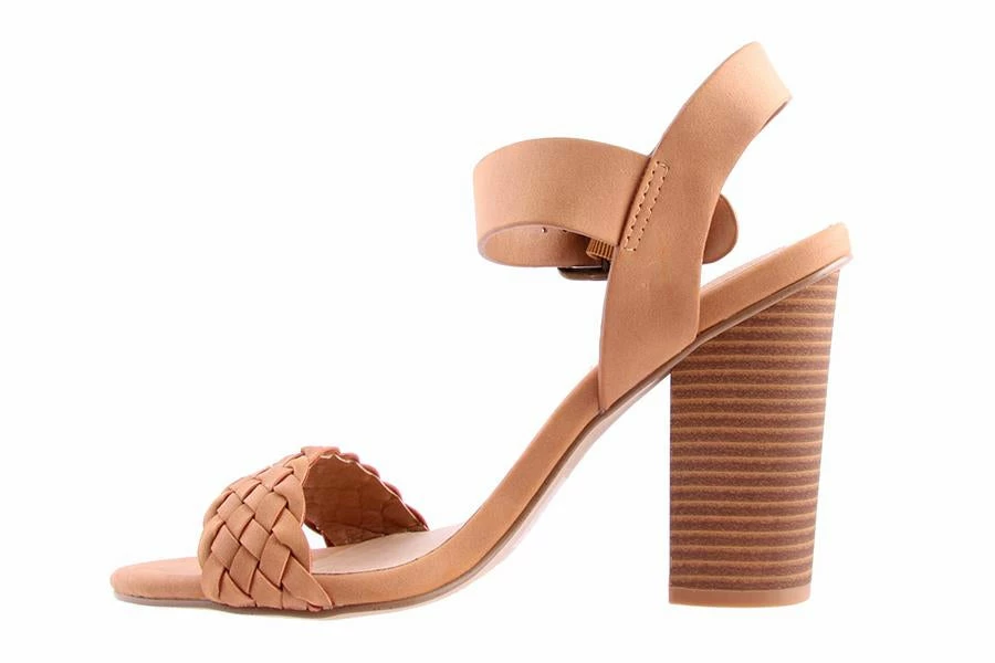 Prudence by London Rebel is a block heel that features a woven look strap, buckle closure and a stacked heel.