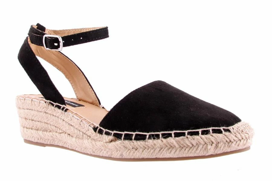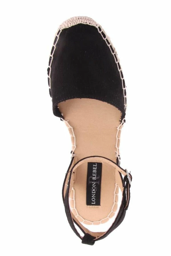 A fun wedge for spring and summer, Linney by London Rebel features a covered toe with a buckled ankle strap on an espadrille sole.