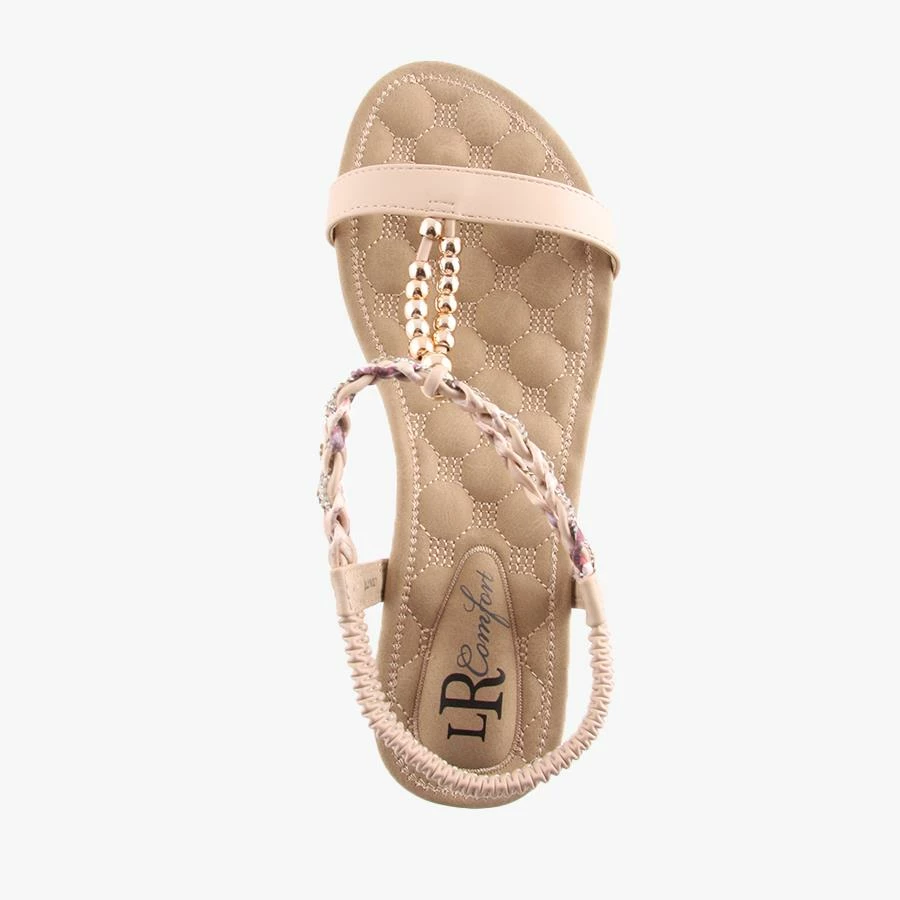 Tully by London Rebel is a low wedge sandal featuring a t-bar strap with embelished detail, elasticised back strap, and lightly padded insole. This sandal is perfect to dress up any casual look.