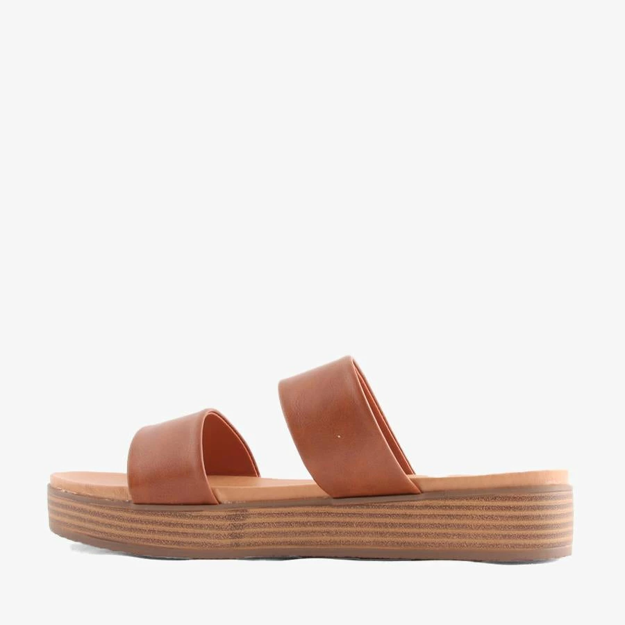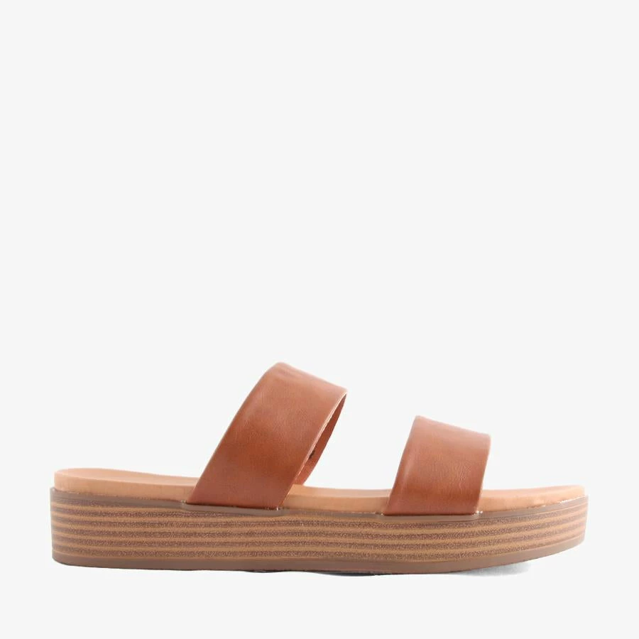 Nelle by London Rebel is a platform sandal featuring two simple straps. This easy to slip on sandal will add both height and flair to your outfit.
