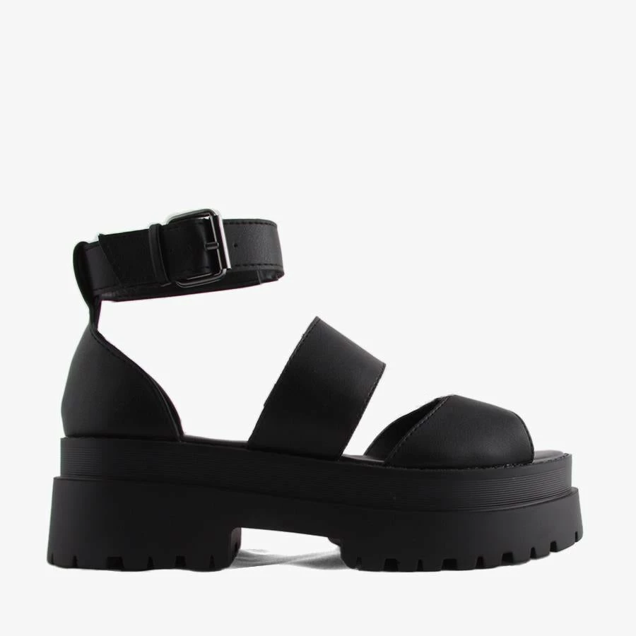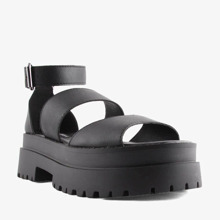 Oakley by London Rebel is a platfrom sandal featuring a thick strappy design and buckle detail. With its edgy look, you will be sure to make a statement with Oakley.