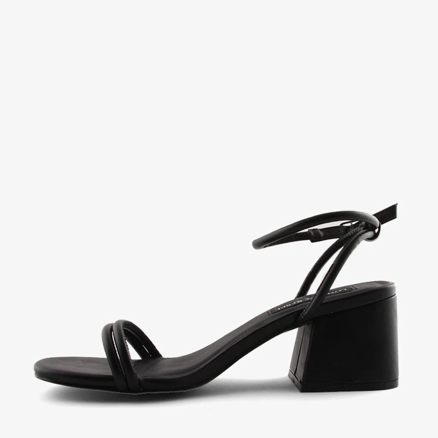 Neve by London Rebel is a strappy low heel featuring two tubular straps across the toes, and a wrap around adjustable ankle.
