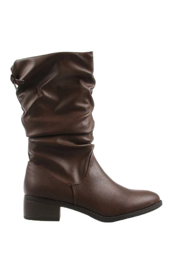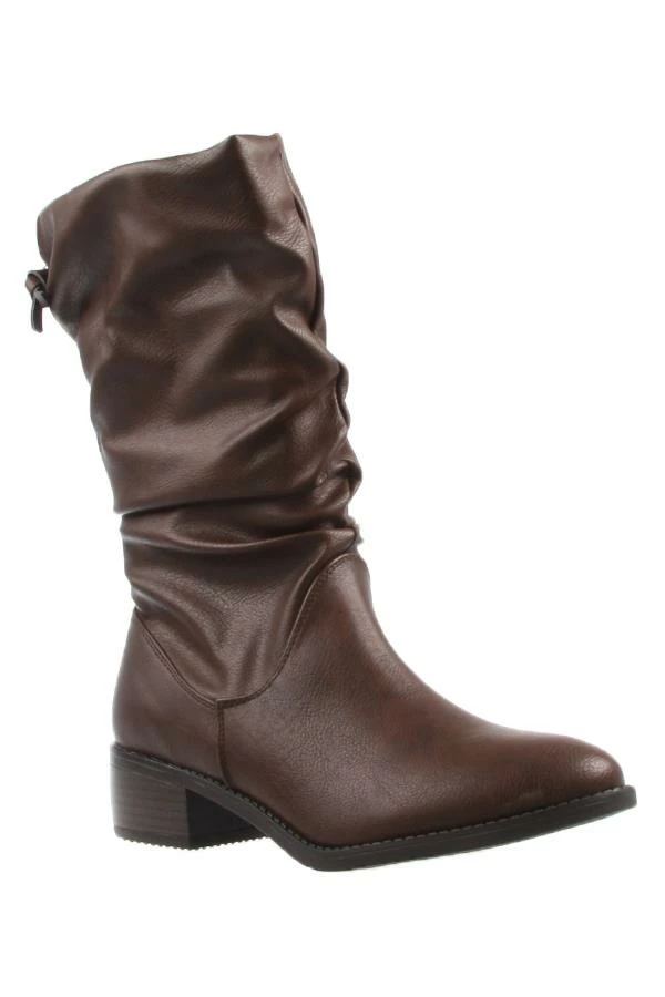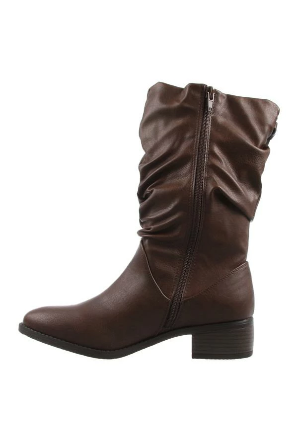 Find your new winter casual boot in Melet by London Rebel. The effortless style of a ruched upper and side zipper on a block heel makes this a boot you can just throw on.