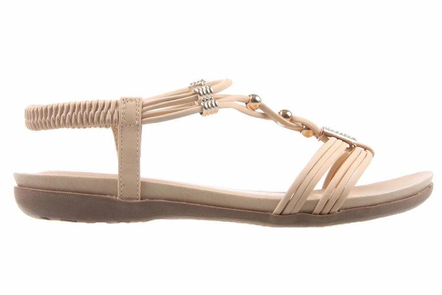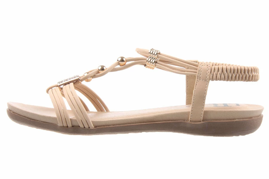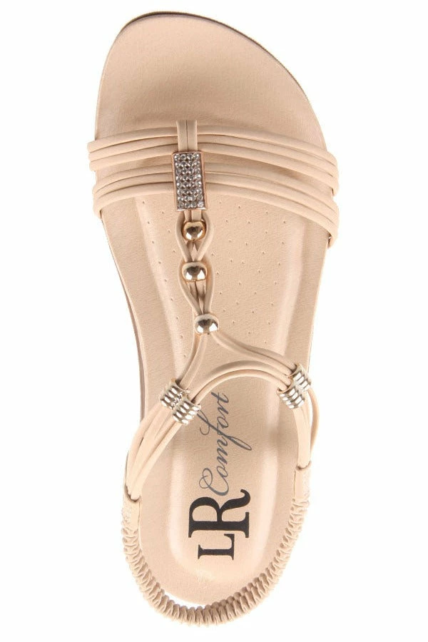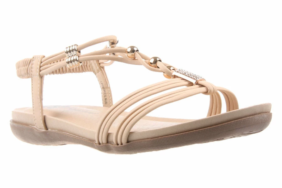 The ultimate summer sandal. Get comfort, style and a bit of bling in Tropics by London Rebel. The T-bar strap and elastic back will ensure these gorgeous sandals will stay secure all day long.