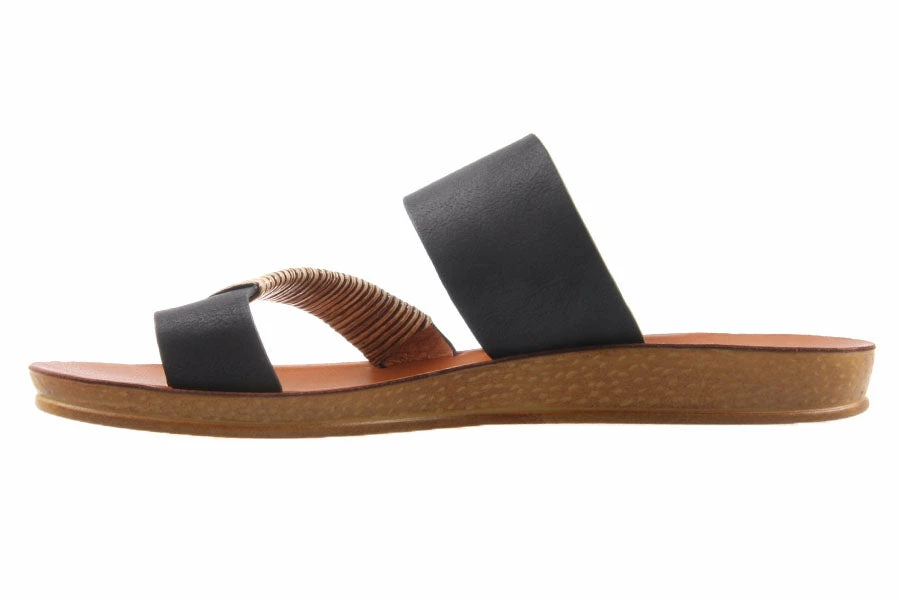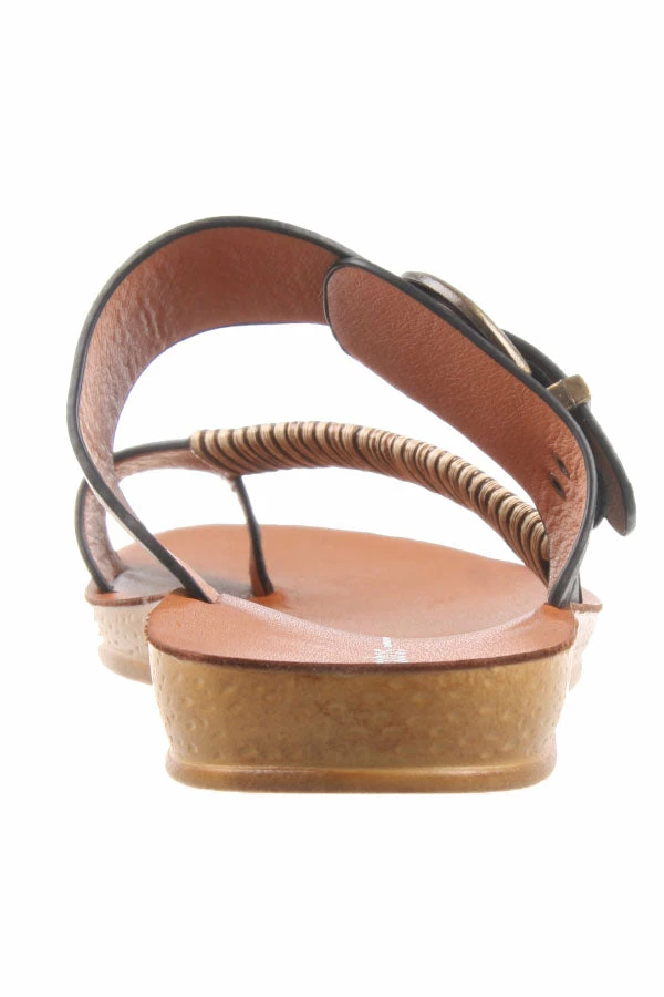 Slip into summer in Bria by Los Cabos. This casual women๏ฟฝs sandal features a buckled strap and wrap over embellishment.