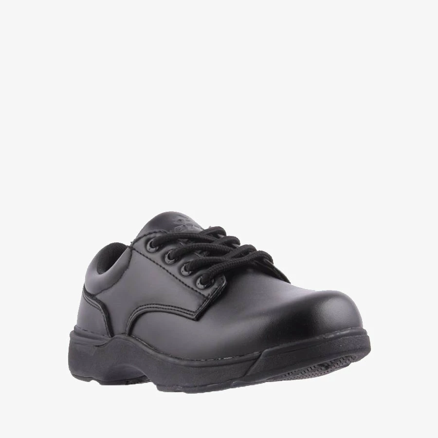 Study by Lotto is a kid’s school shoe featuring a lace up front on the leather upper and a breathable lining with a removable insole. Also features a flexible lightweight sole with grip and durability plus a phylon cushioned midsole just like a running shoe.