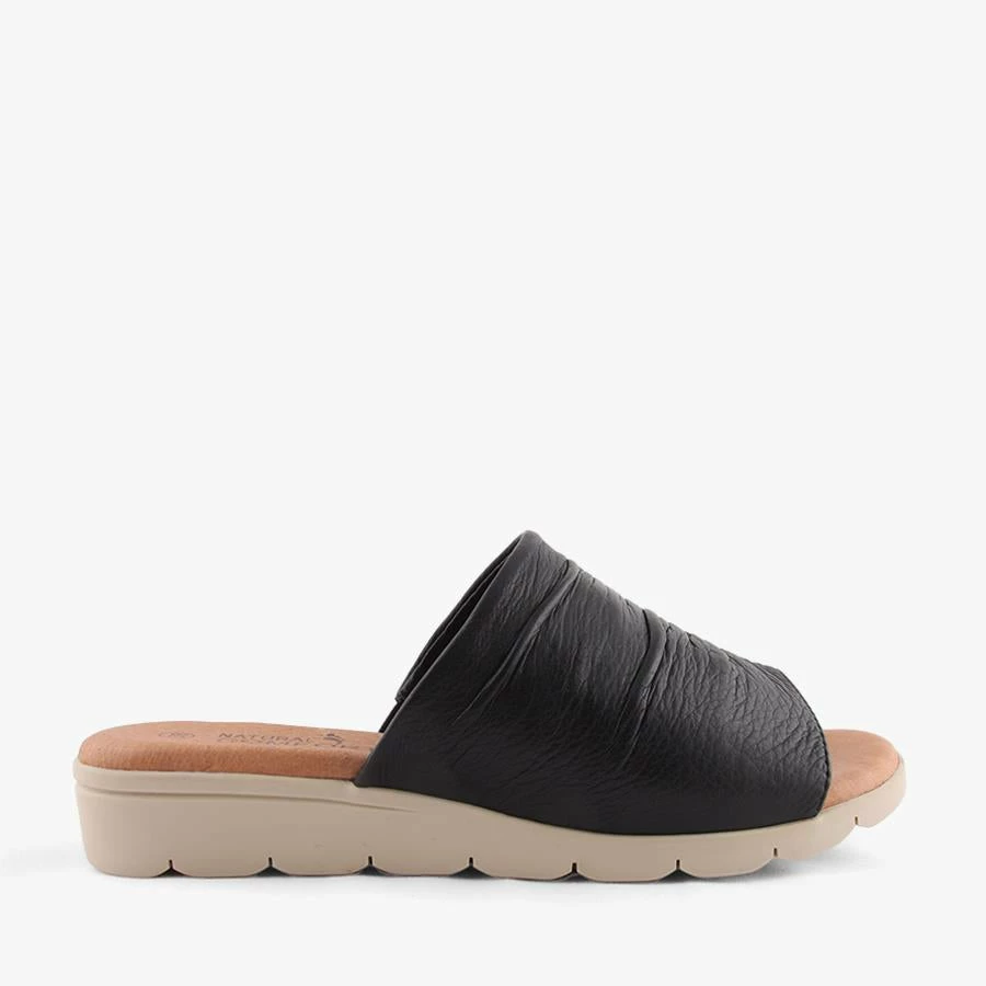 Ariella by Natural Comfort is a women’s leather slip on mule featuring a contoured insole and generous tread. Ariella boasts a rippled pattern leather upper with internal elastic gusset.