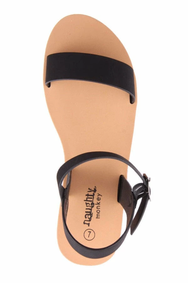 Baskin by Naughty Monkey features a soft lightweight foam sole, nubuck upper and a simple ankle strap with buckle.