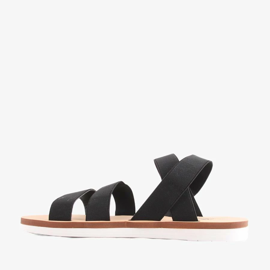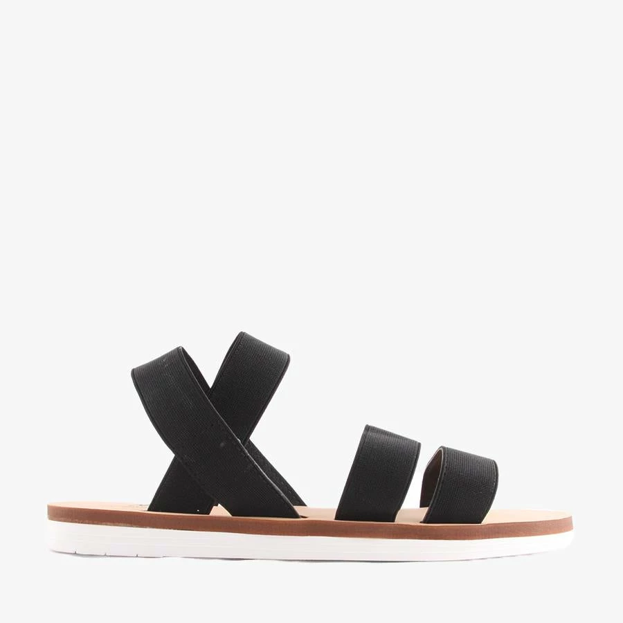 Pella by Naughty Monkey is a flat strappy sandal featuring an elastic strap design, and a soft, spongey sole. This casual sandal will be sure to keep you comfortable throughout the day.