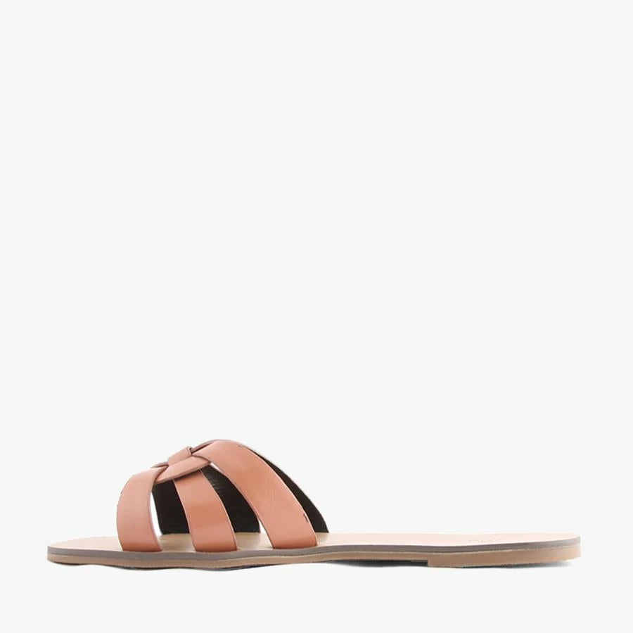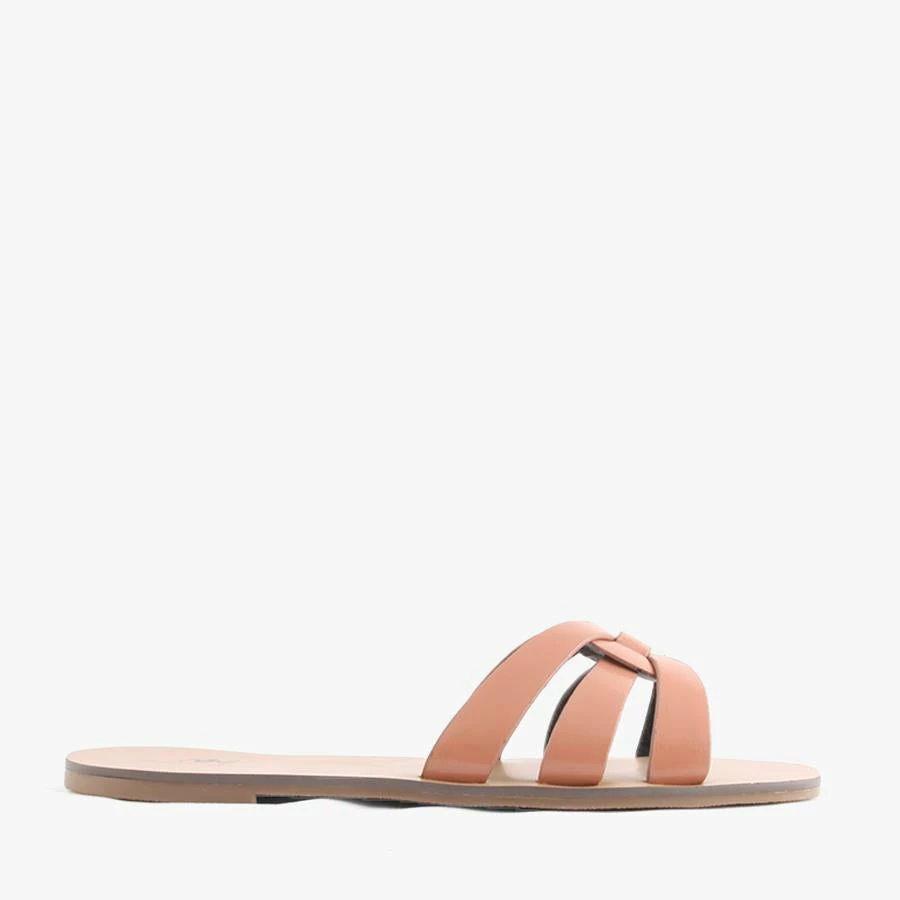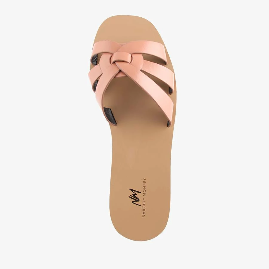 Taavi by Naughty Monkey is a women’s fashion slide featuring a simple cross over upper and flat sole with curved toe, available in many colour ways.