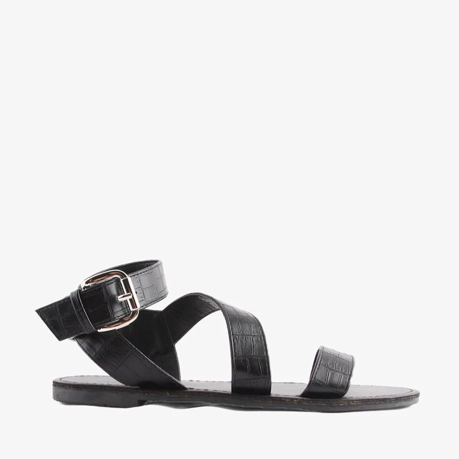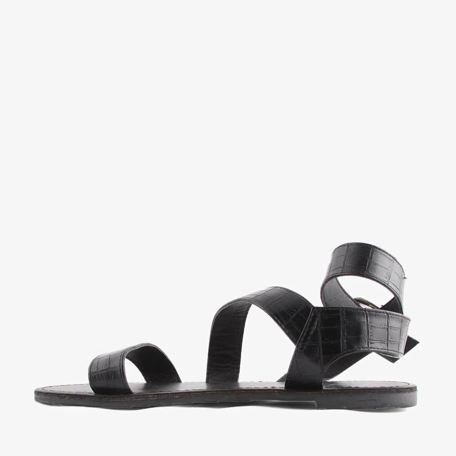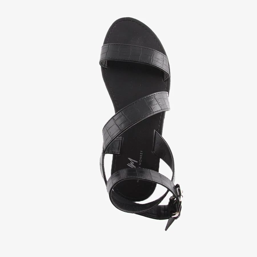 Haylee by Naughty Monkey is a flat sandal featuring a strappy design, trendy croc print and bold buckle. This versatile sandal can be easily worn dressed up or down, from day to night.