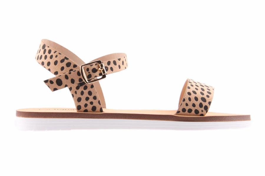 Baskin by Naughty Monkey features a soft lightweight foam sole, nubuck upper and a simple ankle strap with buckle.