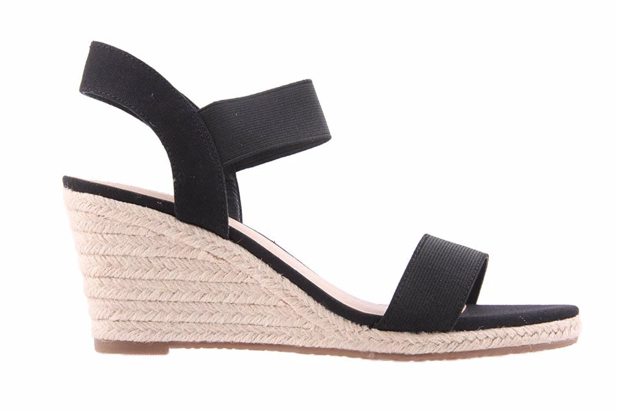 Cozumel by Naughty Monkey is a casual espadrille featuring a canvas upper and wide elastic ankle strap that ensures a comfortable fit..