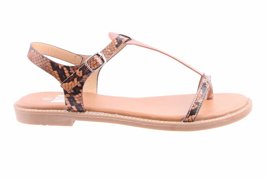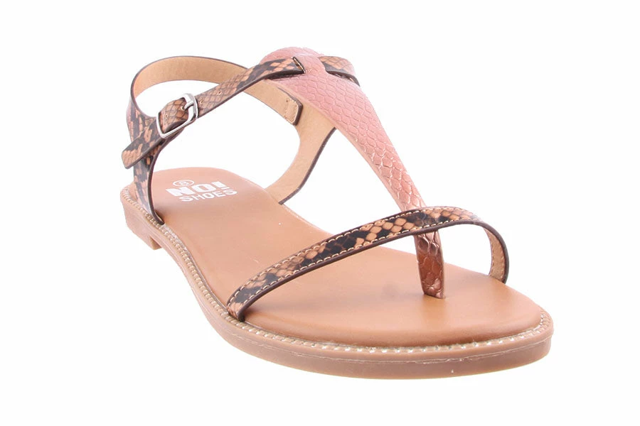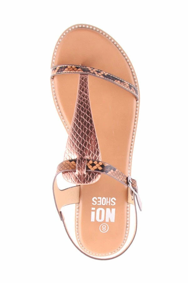 Drone by No! Shoes is a simple strappy sandal. Featuring a gem studded outline, buckle closure and bold printed upper.