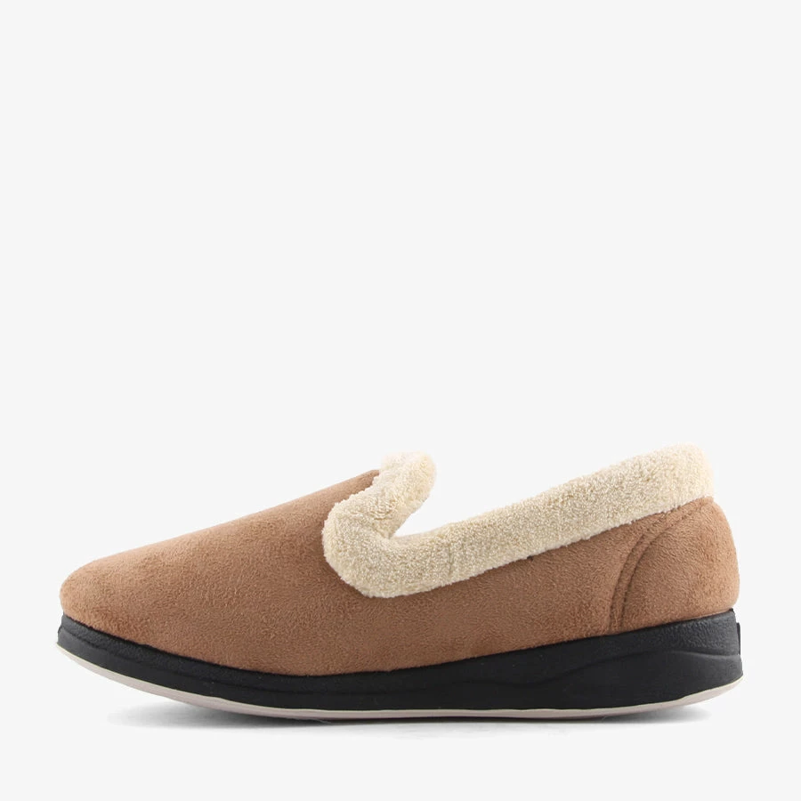 Emille by Panda is a women’s slipper with a velour upper, a soft terry towling lining and cushion. All Panda slipper feature a non-marking rubber outsole.