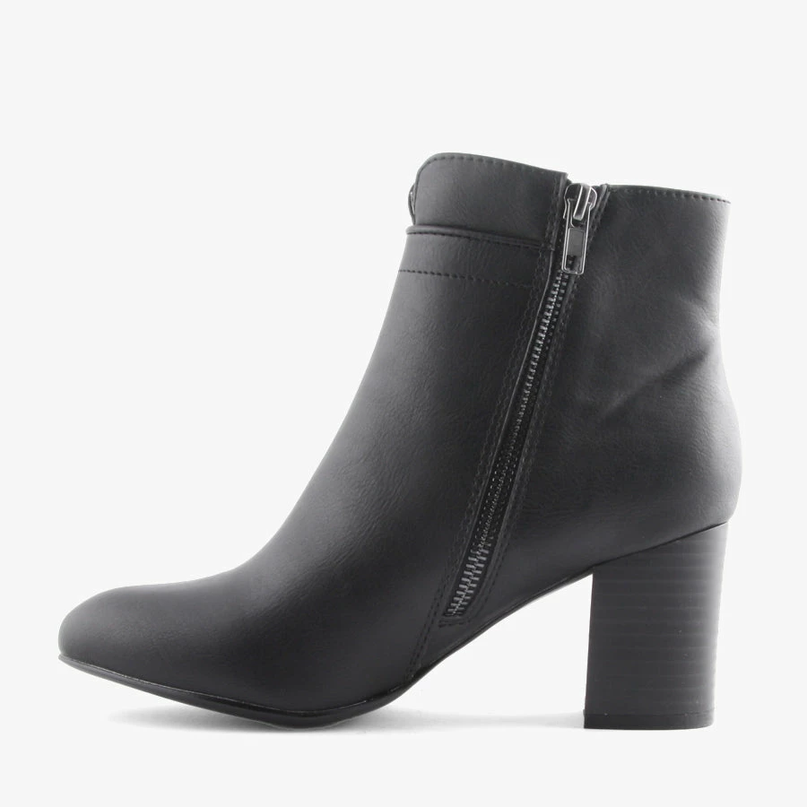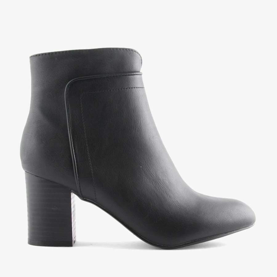 Luisa by Pied A Terre is a women’s ankle boot featuring a smooth upper detailed with piping trim and a metallic side zipper on a stacked heel.