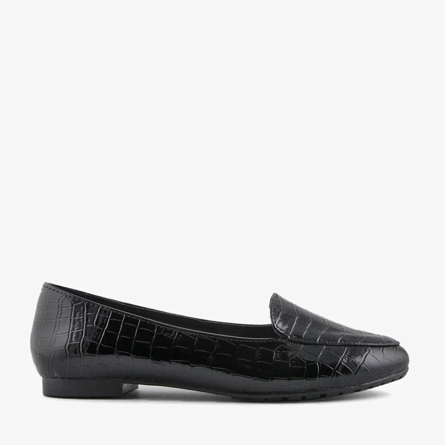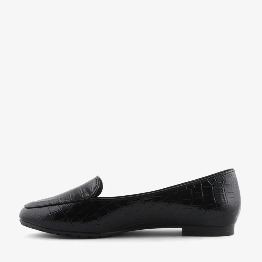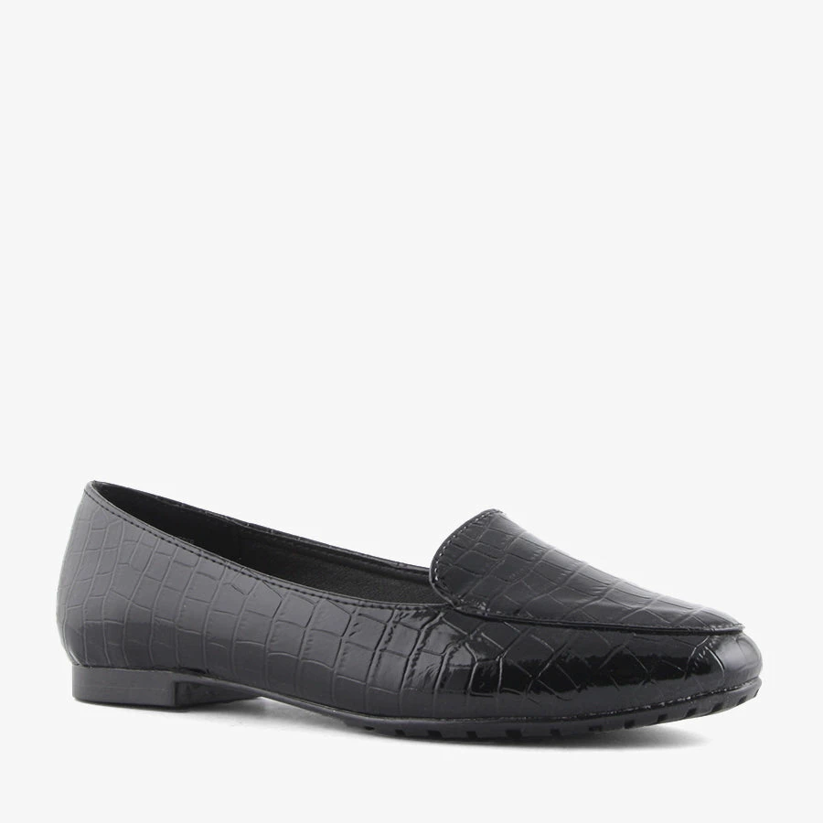 Slip into Jermaine by Pied A Terre, a patent albert cut loafer. Featuring a croc upper and sturdy sole, this classic flat will fit seamlessly into your wardrobe.