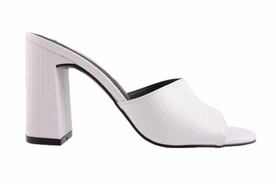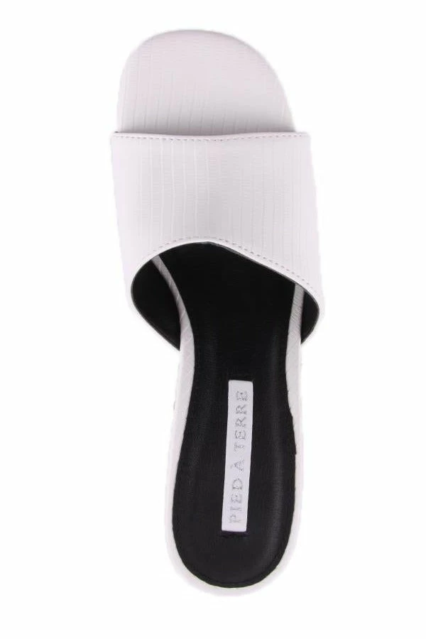Slip into Zahra by Pied A Terre. This open toed mule features a block heel, reptile textured upper and a single wide strap.