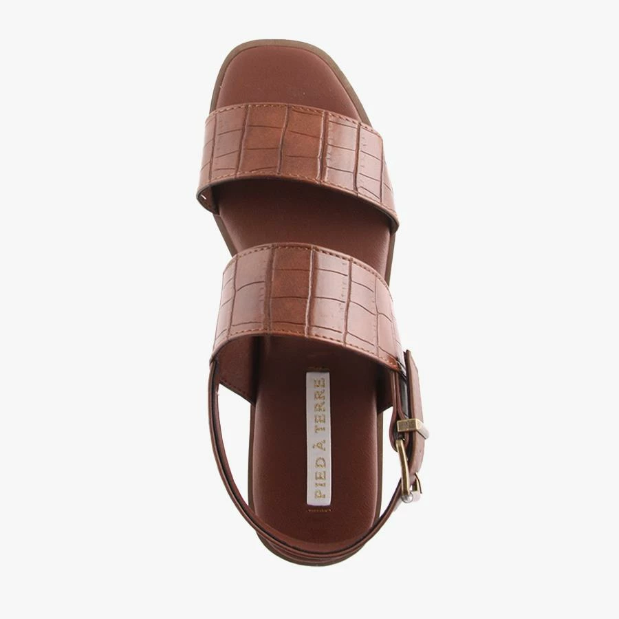 Lila by Pied A Terre is a flat sandal featuring a strappy design, sling-back strap, and trendy croc print. This strappy sandal will add a little more to any casual outfit.