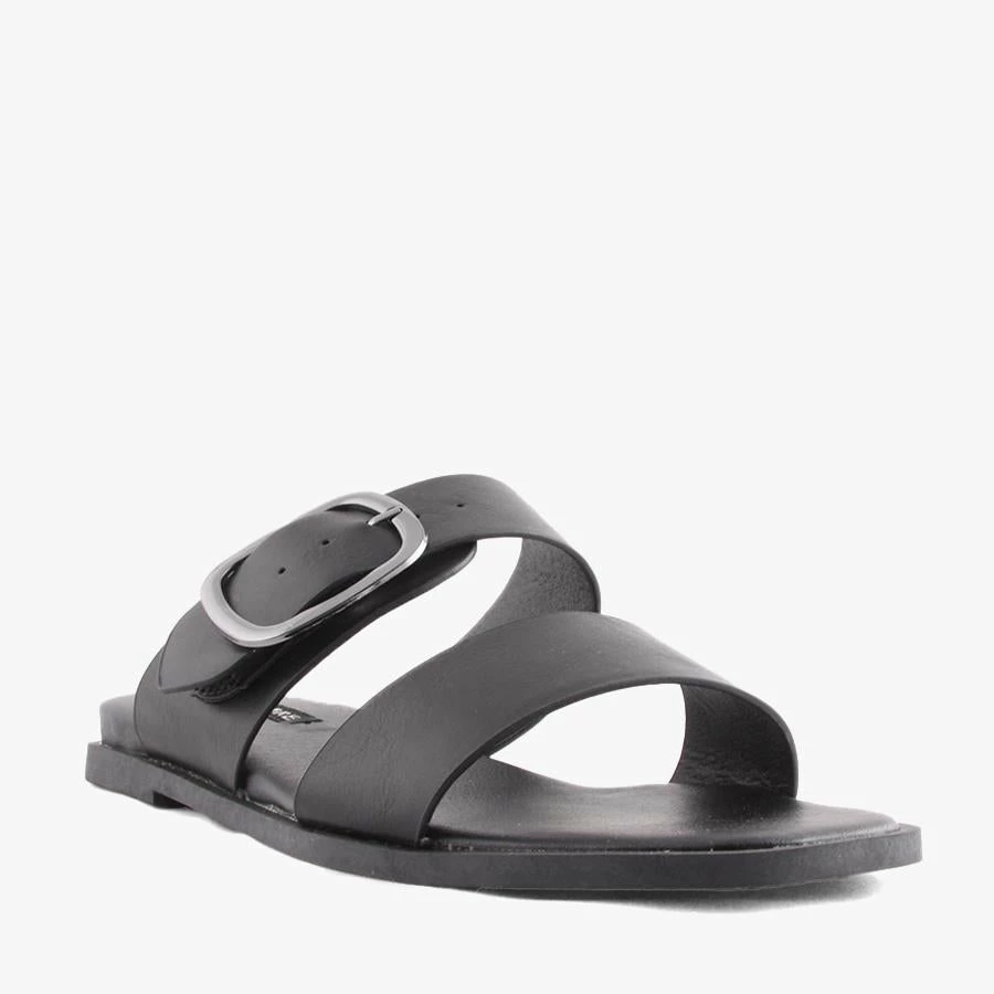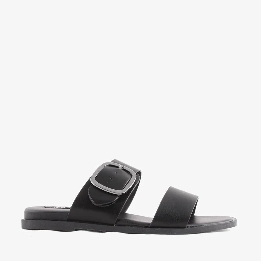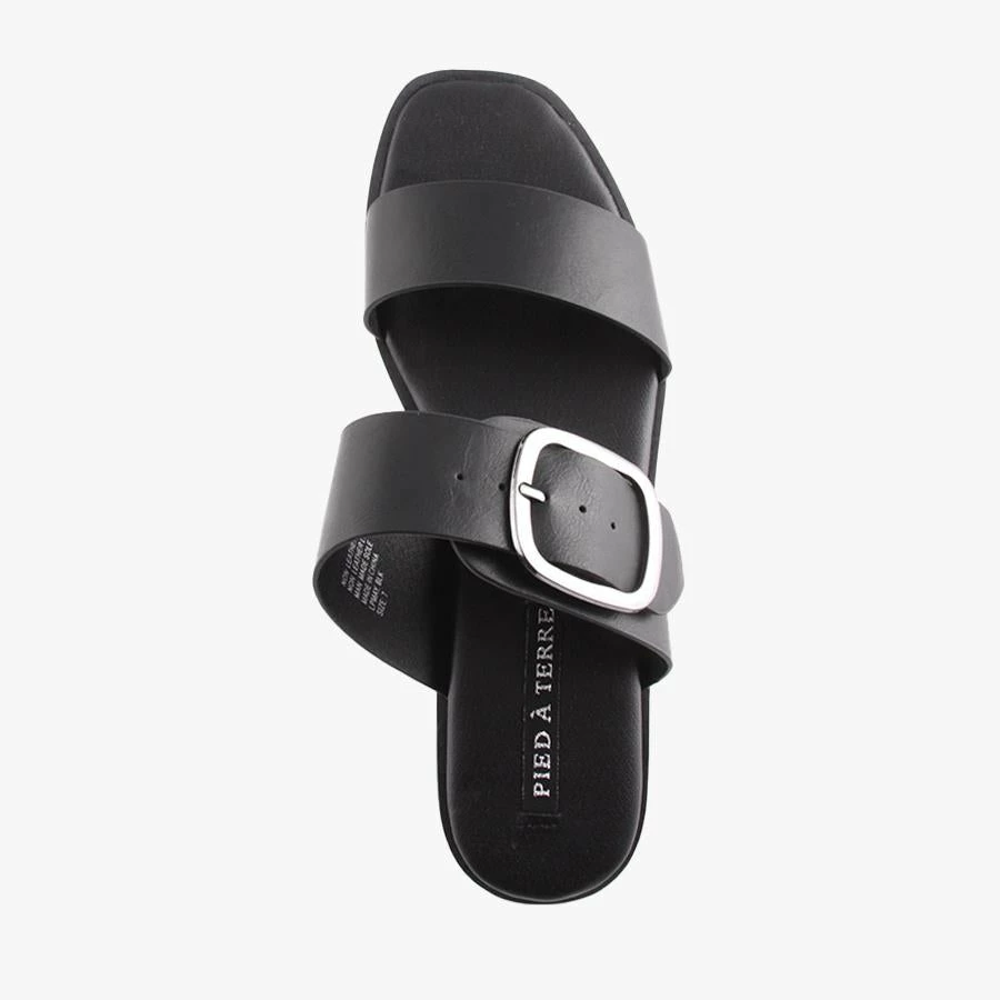 May by Pied A Terre is a flat sandal featuring two thick straps, bold buckle design, and lighly padded insole. This sleek and stylish slip on is a staple in any wardrobe.