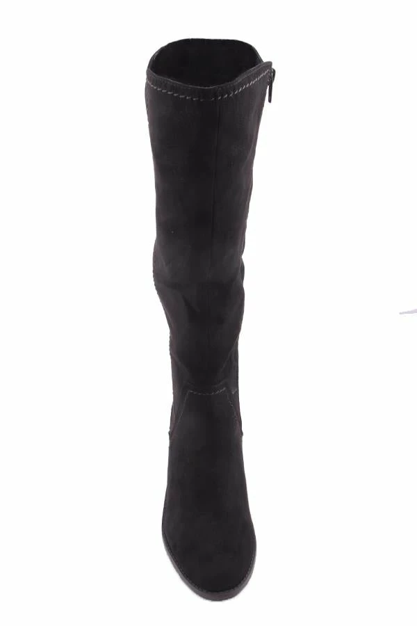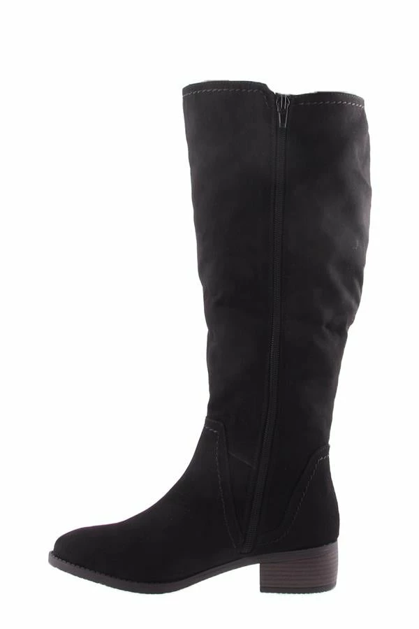 Liddel by Pied A Terre is a women’s knee high boot featuring a microsuede upper, embellished with thick top stitching details and a full length side zipper.