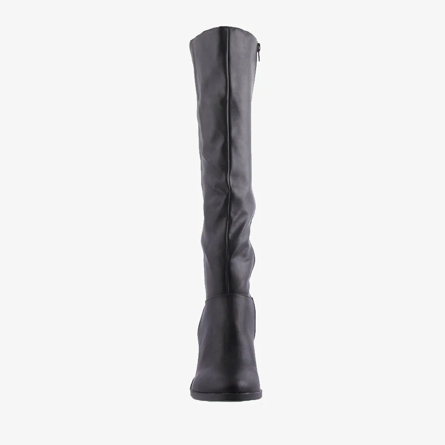 Affair by Pied A Terre is a classic style women’s knee high boot featuring a full length side zipper with an almond toe and stacked heel.