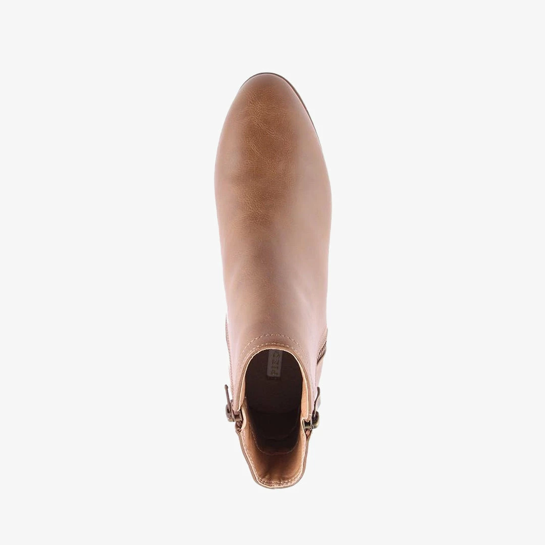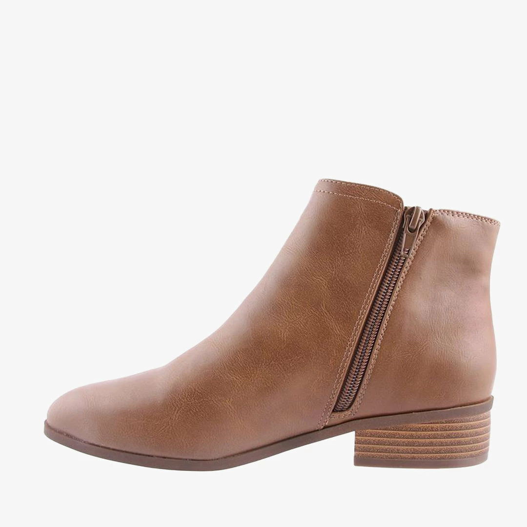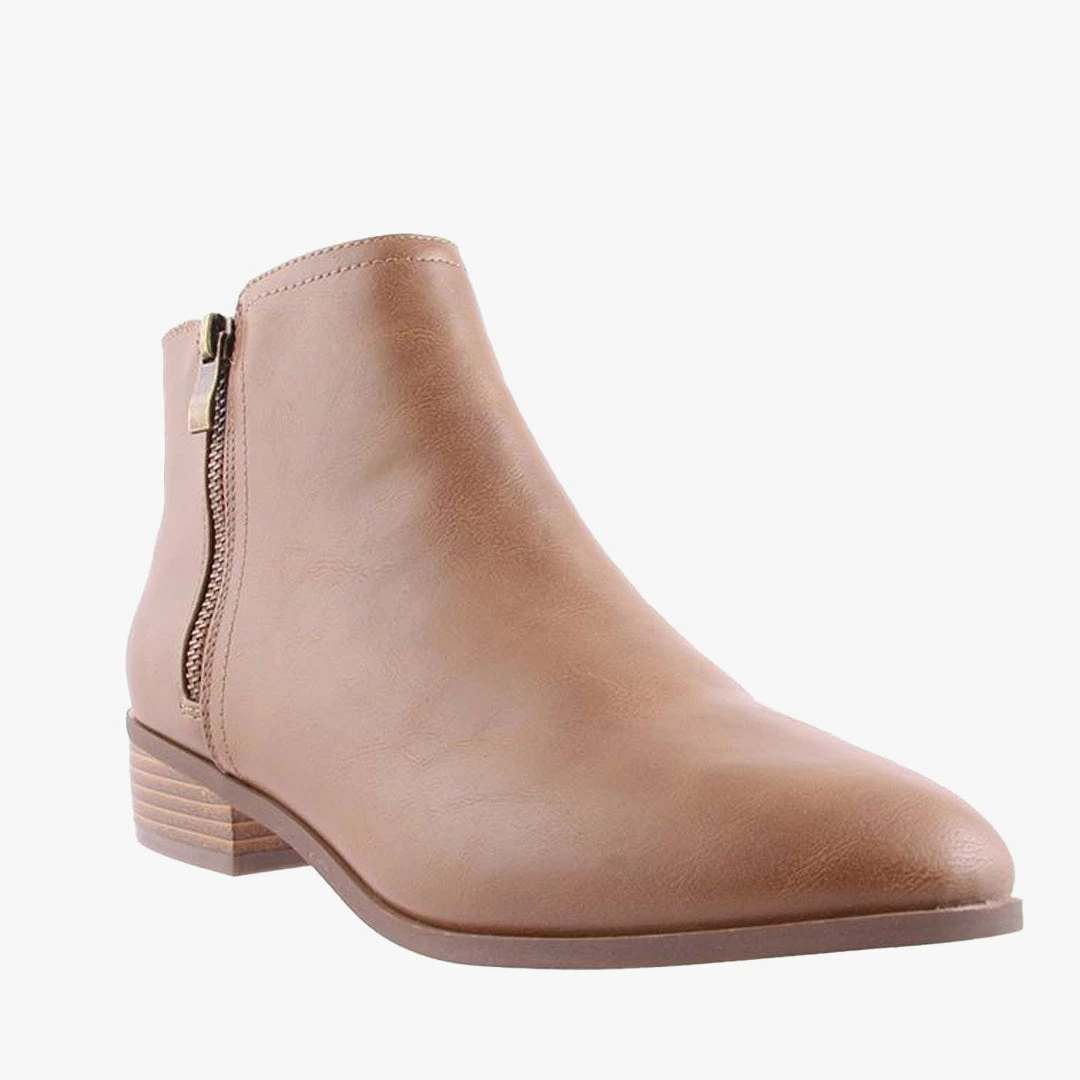 Kammi by Pied A Terre is a women’s ankle boot that features a smooth leather look upper, decorative outer zip with functioning inner zip for easy wear.