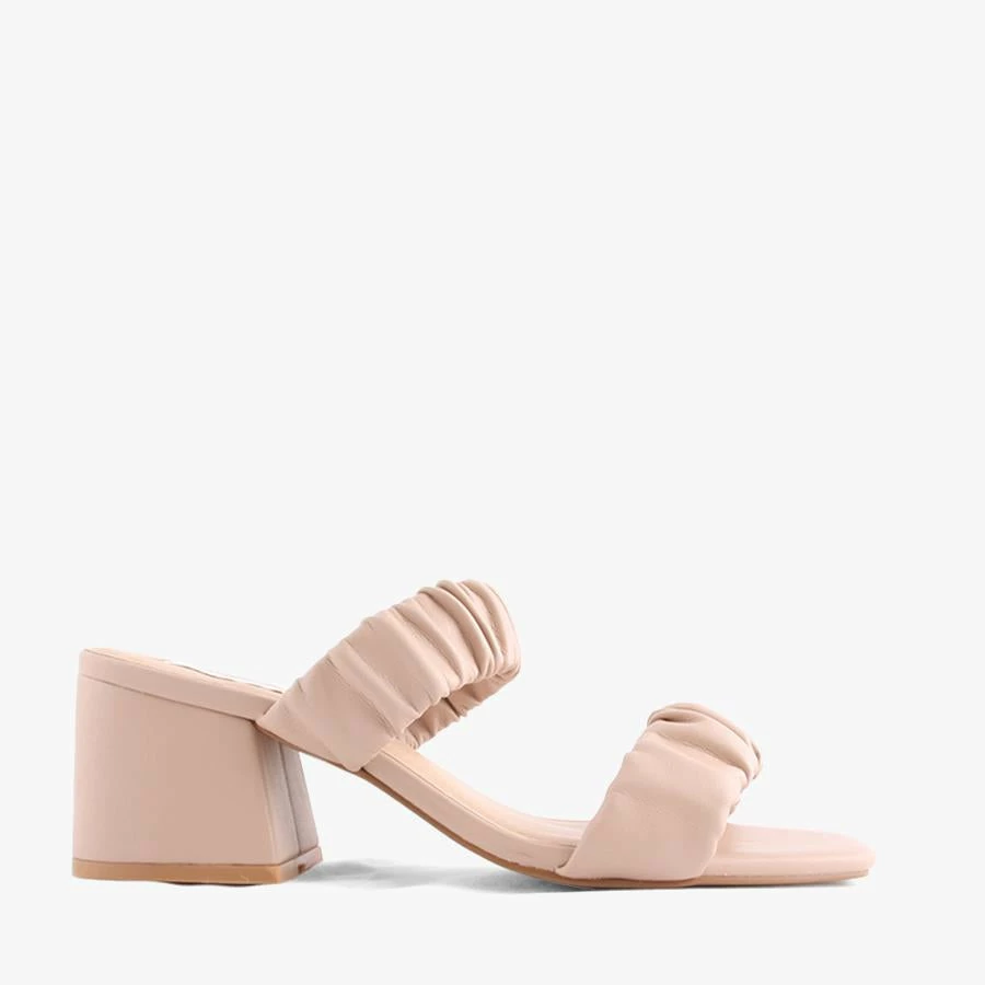 Gerri by Pied A Terre is a mid heeled mule featuring a block heel and two straps with ruching detail. At a comfortable height, this heeled mule is the ultimate shoe for any occasion.