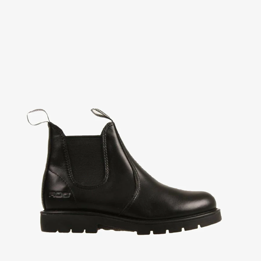 Jumbuck by Roc Boots is a kids school boot featuring elasticised side panels and a smooth leather upper.