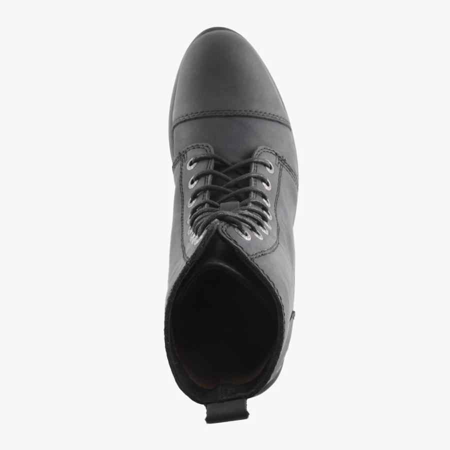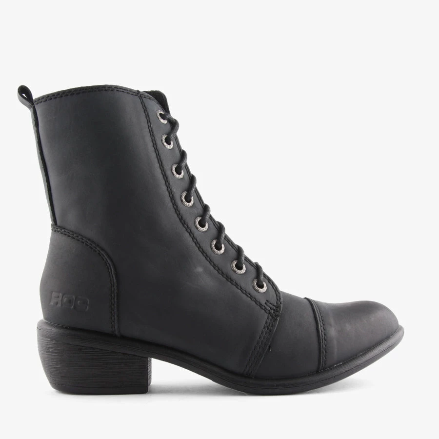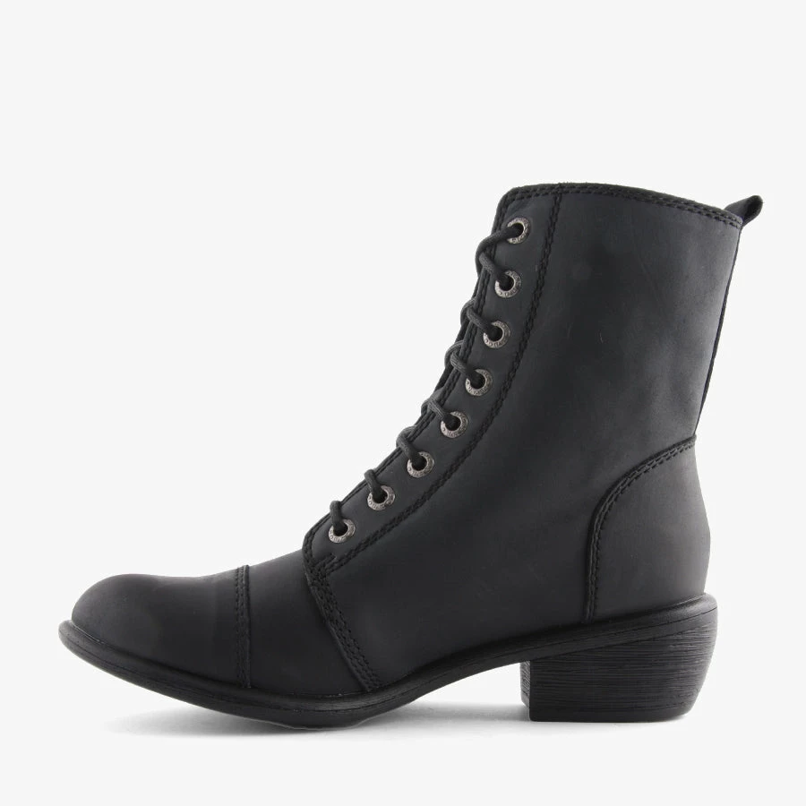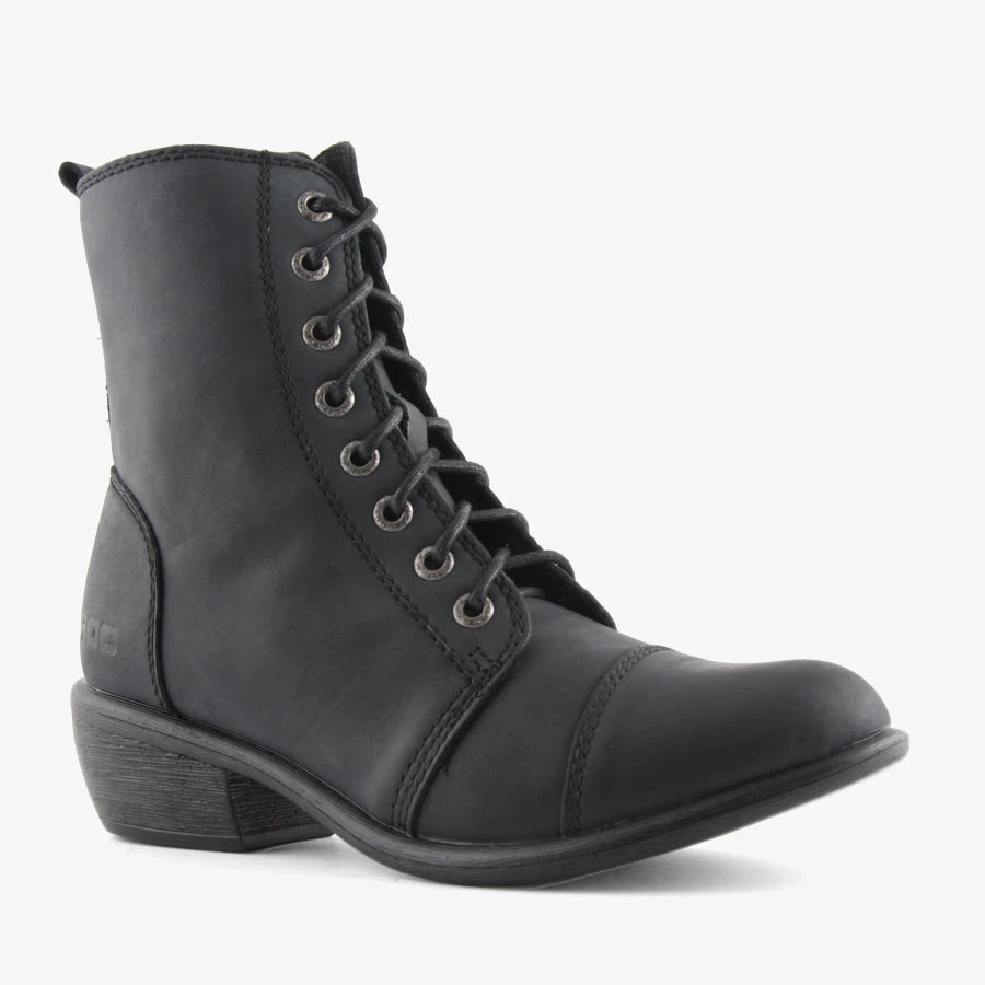 Territory by Roc Boots is a military style ankle boot featuring an 8 lug lace up front with a crinkled leather upper on a low block heel.Width: B