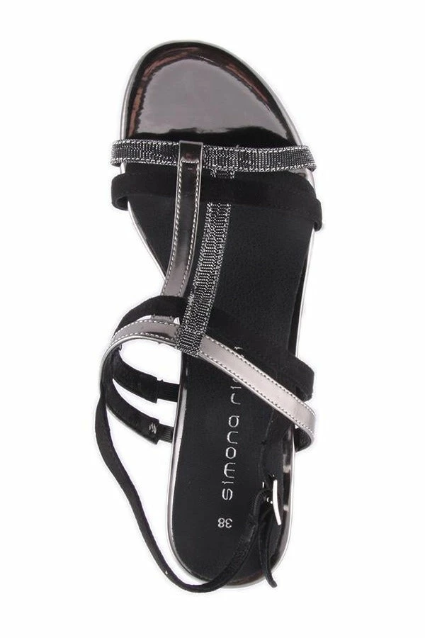 Karina by Simona Ricci is a dress sandal featuring simple straps and a buckle fastening strap. With a low heel and some glitter these sandals are perfect for a special occasion.