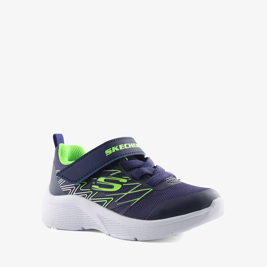 Micro Spec Texlor by Skechers is an infants sneaker that features a lightweight sole, elastic bungee lace and velcro strap closure.