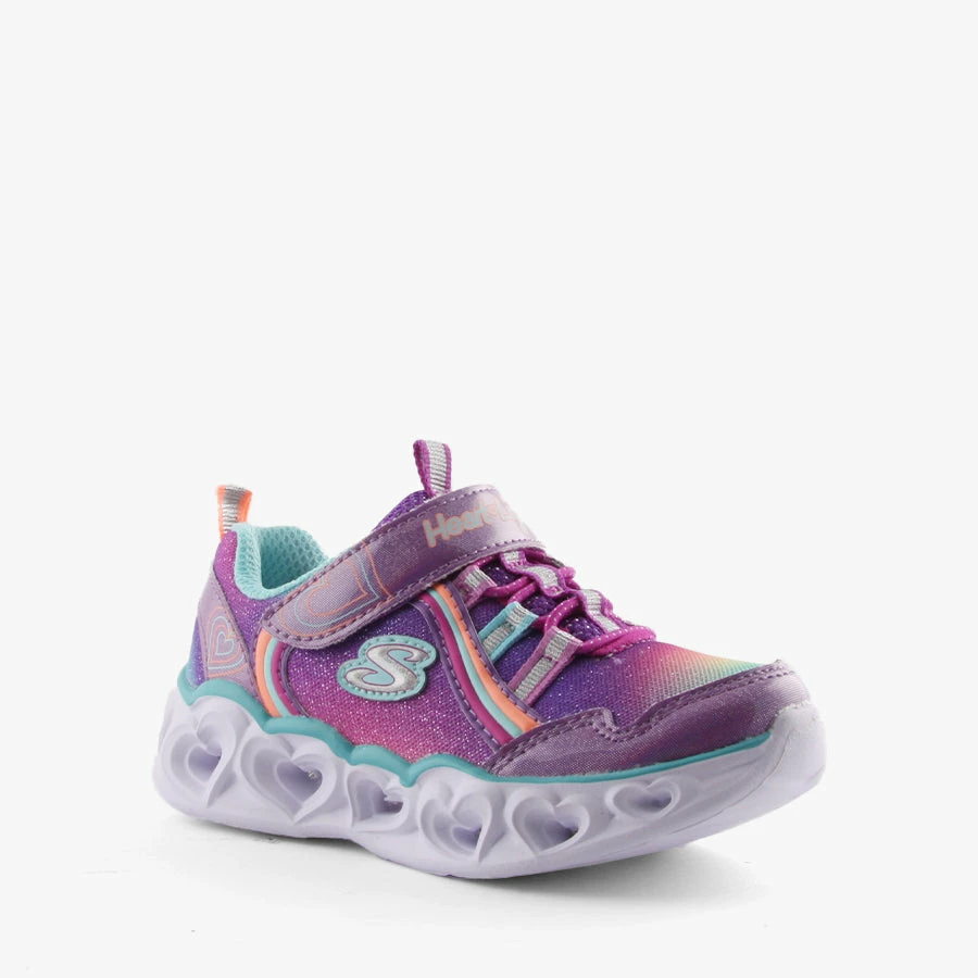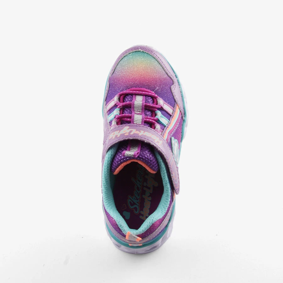 Heart Lights Rainbow Lux by Skechers is an infants light up sneaker that features a bungee elastic lace, velcro strap closure and light up sole with heart details.