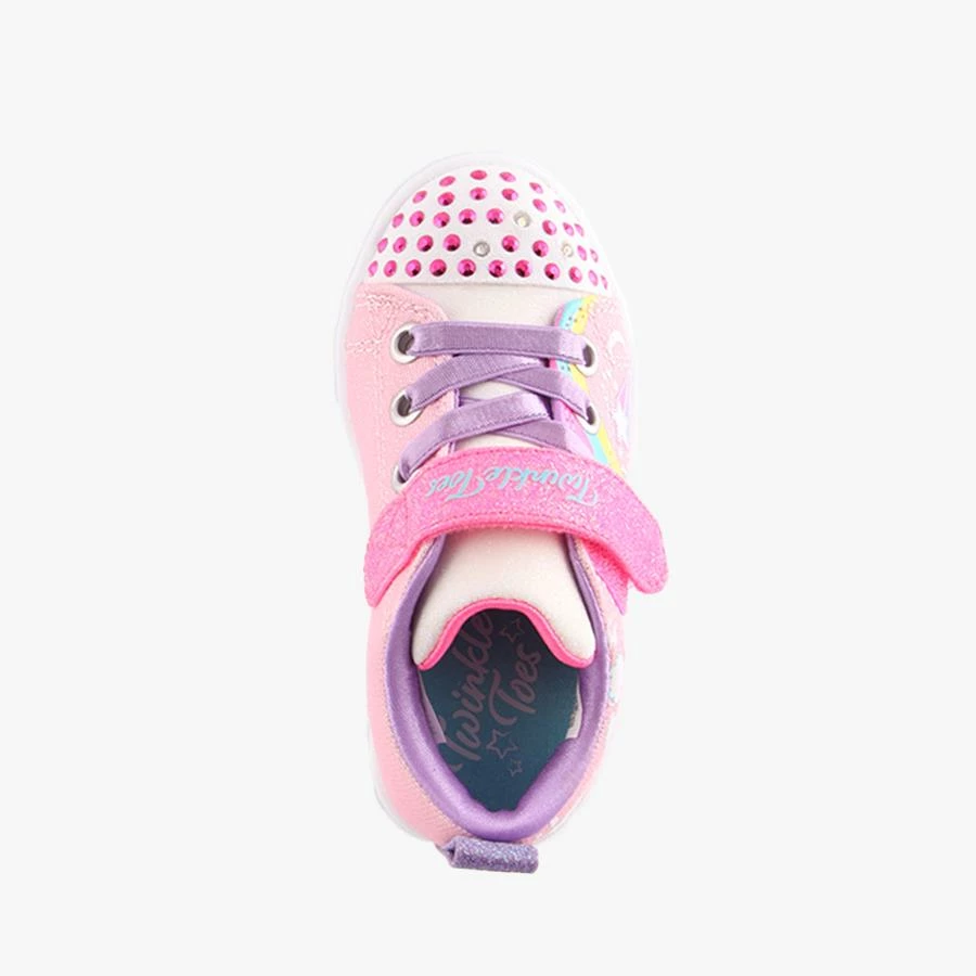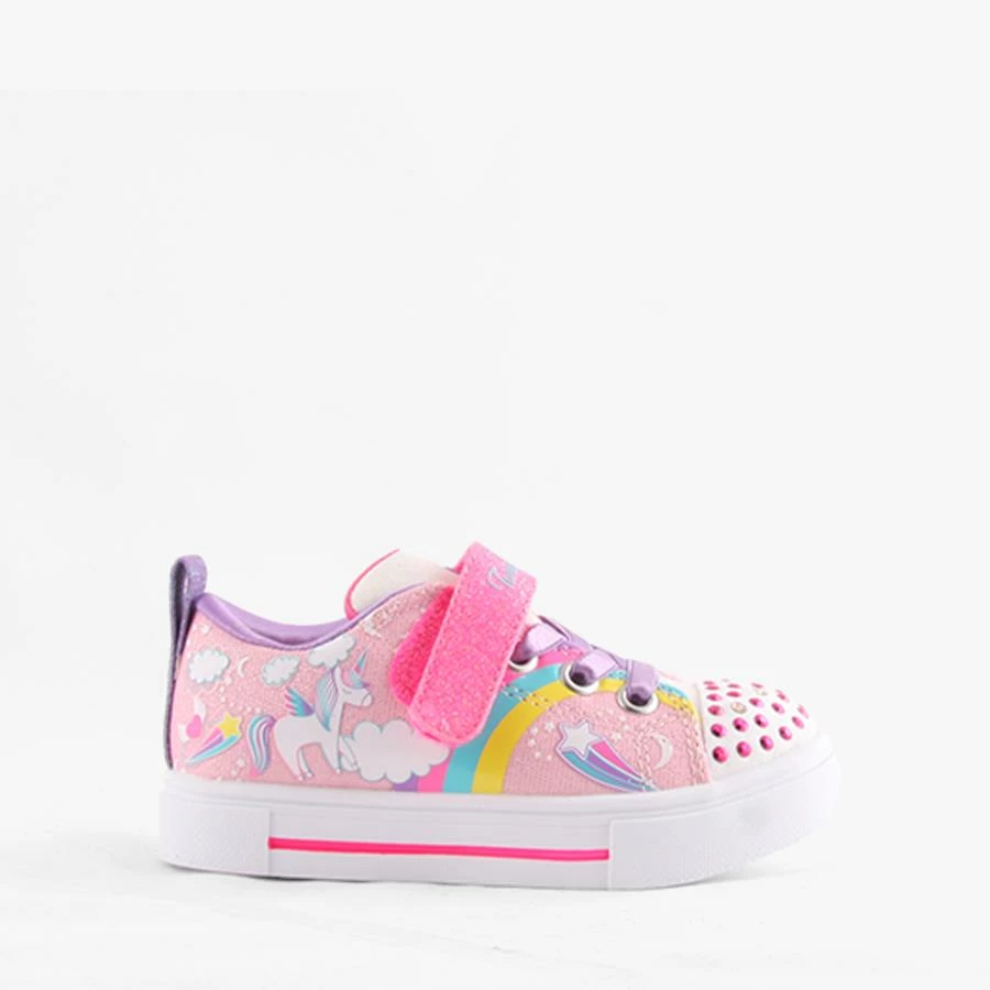 Twinkle Sparks Unicorn by Skechers is an infants shoe that features a bungee elastic lace, velcro strap closure and light up sparkles on the toe.