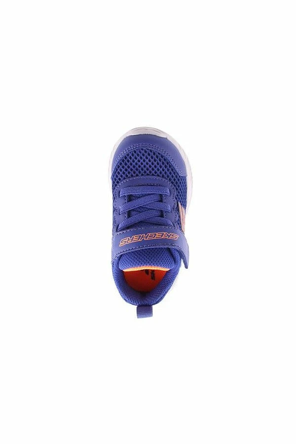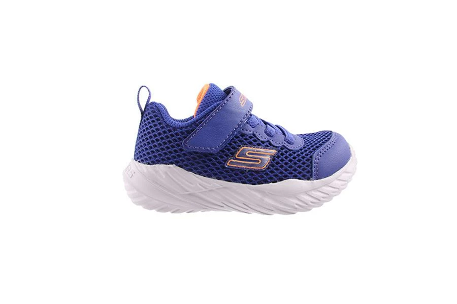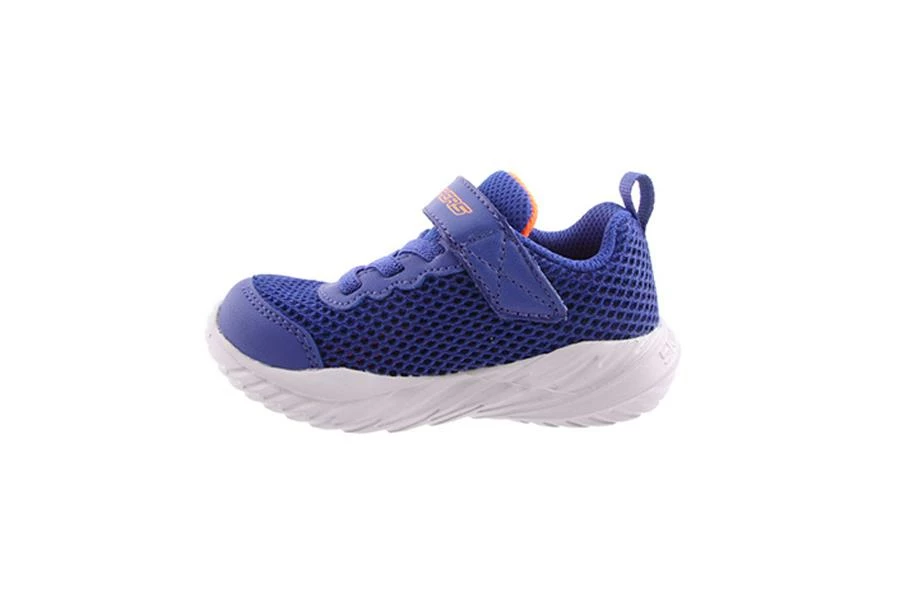 Nitro Sprint Krodon by Skechers is an infant’s sneaker featuring a mesh upper with elastic stretch laces and a velcro strap closure.