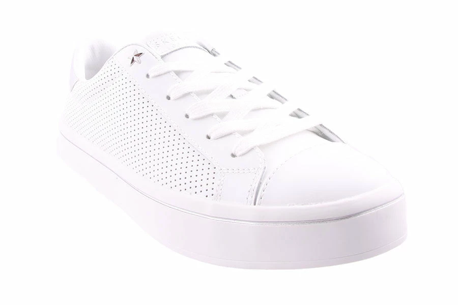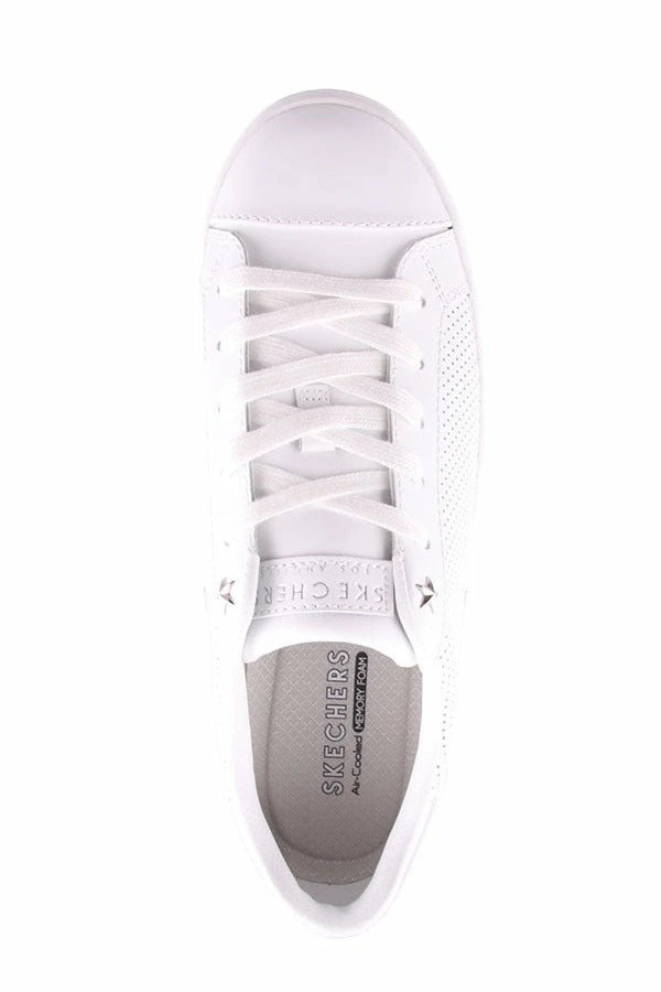 Hi Lites by Skechers is a women’s lace up sneaker featuring a perforated leather upper, air cooled memory foam insole and a metallic silver heel panel.