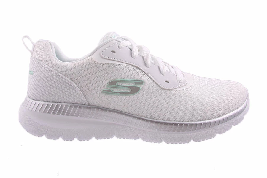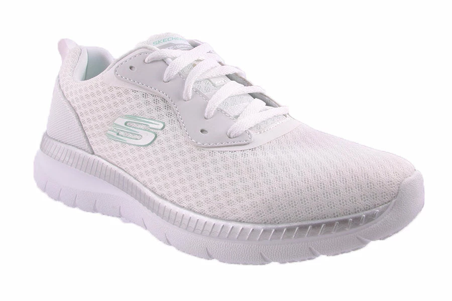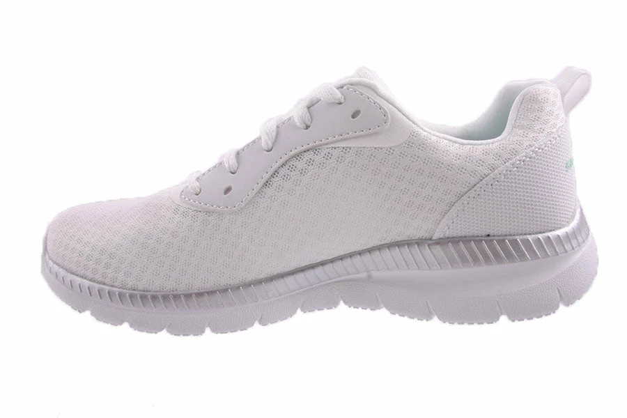 Bountiful by Skechers is a women’s lace up sneaker featuring a mesh upper with a padded collar and tongue plus a memory foam insole.