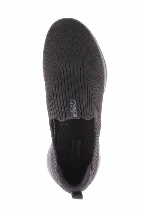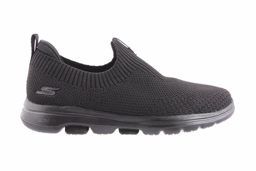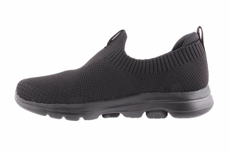 Go Walk 5 Trendy by Skechers is a woman’s slip-on sneaker style with a comfortable woven stretch fit upper, signature Goga mat insole and padded collar for extra comfort.