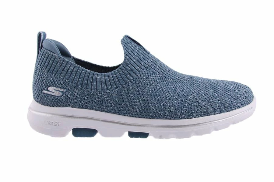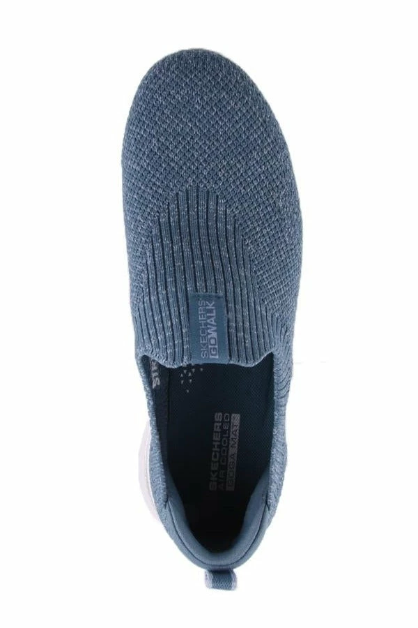 Go Walk 5 Trendy by Skechers is a woman’s slip-on sneaker style with a comfortable woven stretch fit upper, signature Goga mat insole and padded collar for extra comfort.