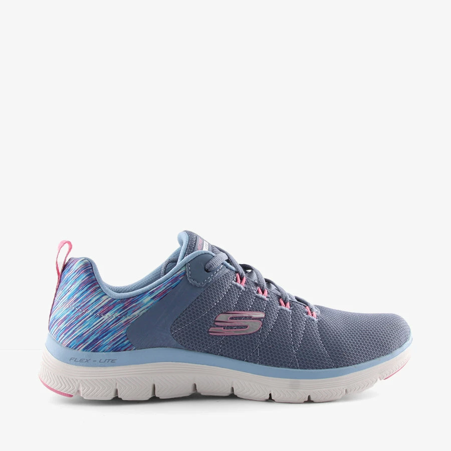 FA4- Dream Easy by Skechers is a women’s lace-up sneaker featuring a breathable athletic mesh upper with an Air-Cooled Memory Foam cushioned insole and Contrast space-dye heel accent. Machine washable.