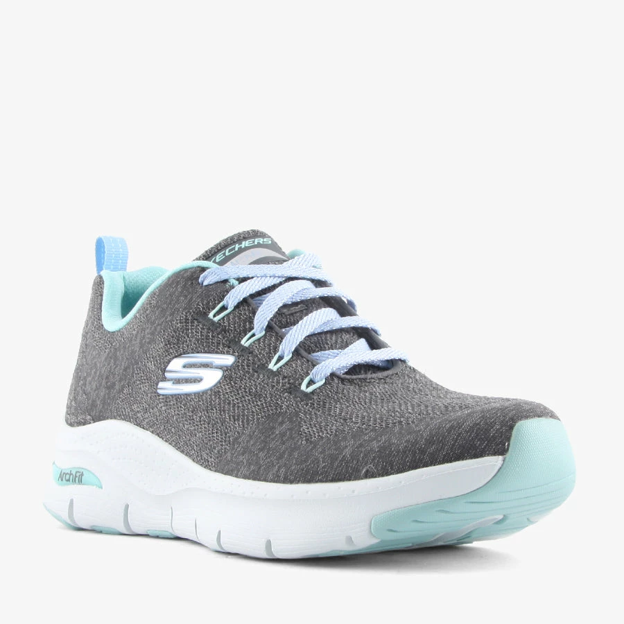 Arch Fit- Comfy Wave by Skechers is a women’s lace up sneaker featuring a knit mesh upper with a padded collar and tongue plus a podiatrist certified arch support removable insole. A machine washable design.